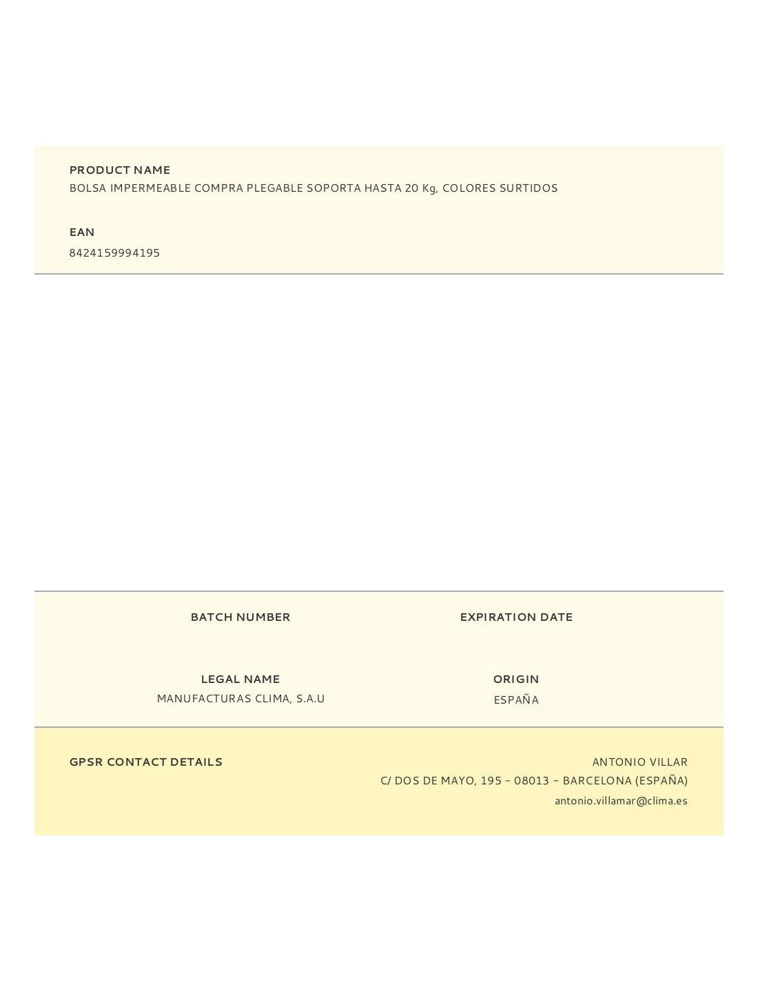 Bolsa impermeable plegable. colores surtidos, soporta 20kg 30206, con una resisitencia superior a los 20kg de peso, fabricada con tejido reciclado. 30206 c-collection
