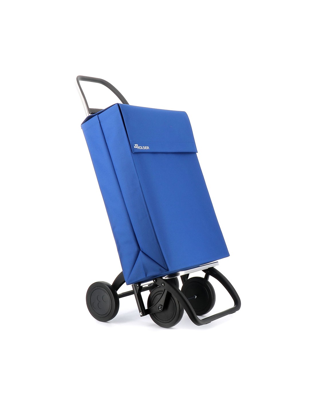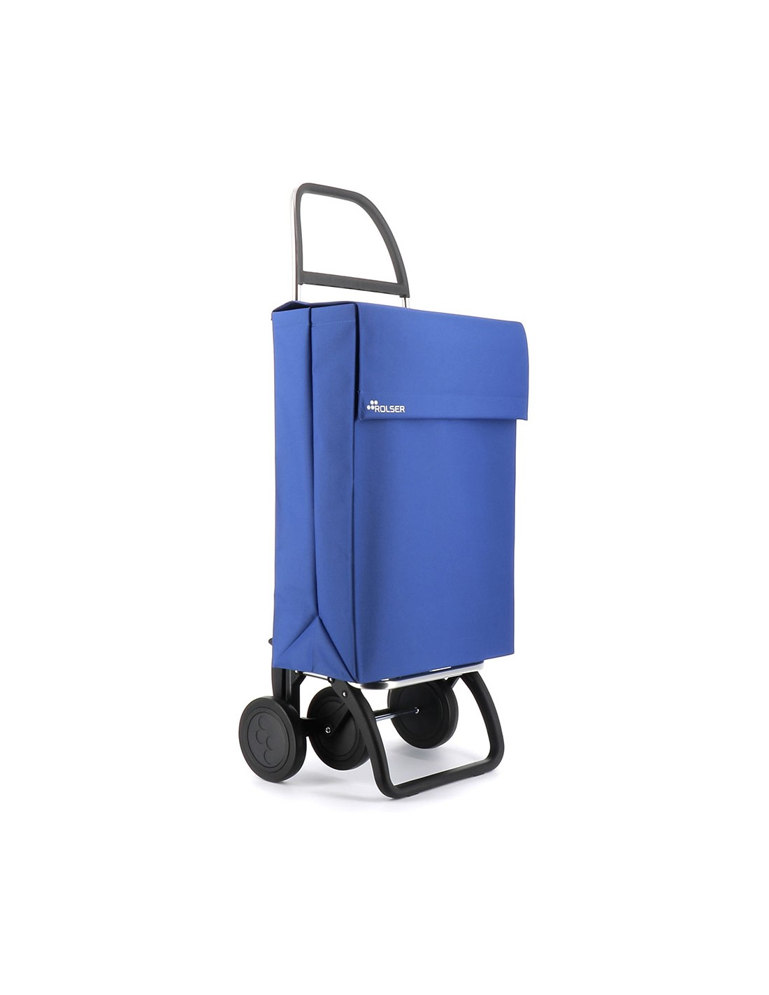 Carro de la compra jean ln de aluminio de 2/4 ruedas, posición de dos ruedas para llevar detrás cuando está vacío, y empujando delante cuando está lleno con 4 ruedas. chasis con apoyo delantero y base inferior abatible para guardar en espacios pequeños. la bolsa jean de 43 l tiene armazón interior rígido plegable, carga recomendada 25 kg, máxima 40 kg, azul. dimensiones abierto 4 ruedas: 390 x 470 x 925 mm. dimensiones plegado: 390 x 215 x 1050 mm