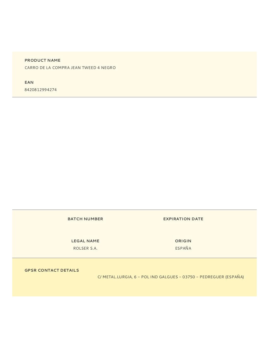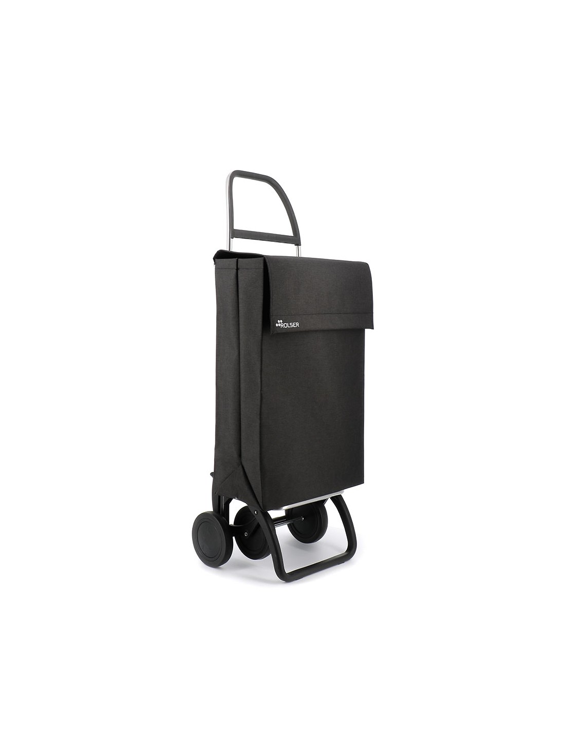 Carro de la compra jean tweed de aluminio de 2/4 ruedas. chasis con apoyo delantero y base inferior abatible para guardar en espacios pequeños. con bolsa jean tweed de capacidad 43 l y armazón interior rígido plegable.carga recomendada 25 kg. carga máxima: 40 kg. color: negro. dimensiones abierto 4 ruedas: 390 x 470 x 925 mm. dimensiones plegado: 390 x 215 x 1050 mm
