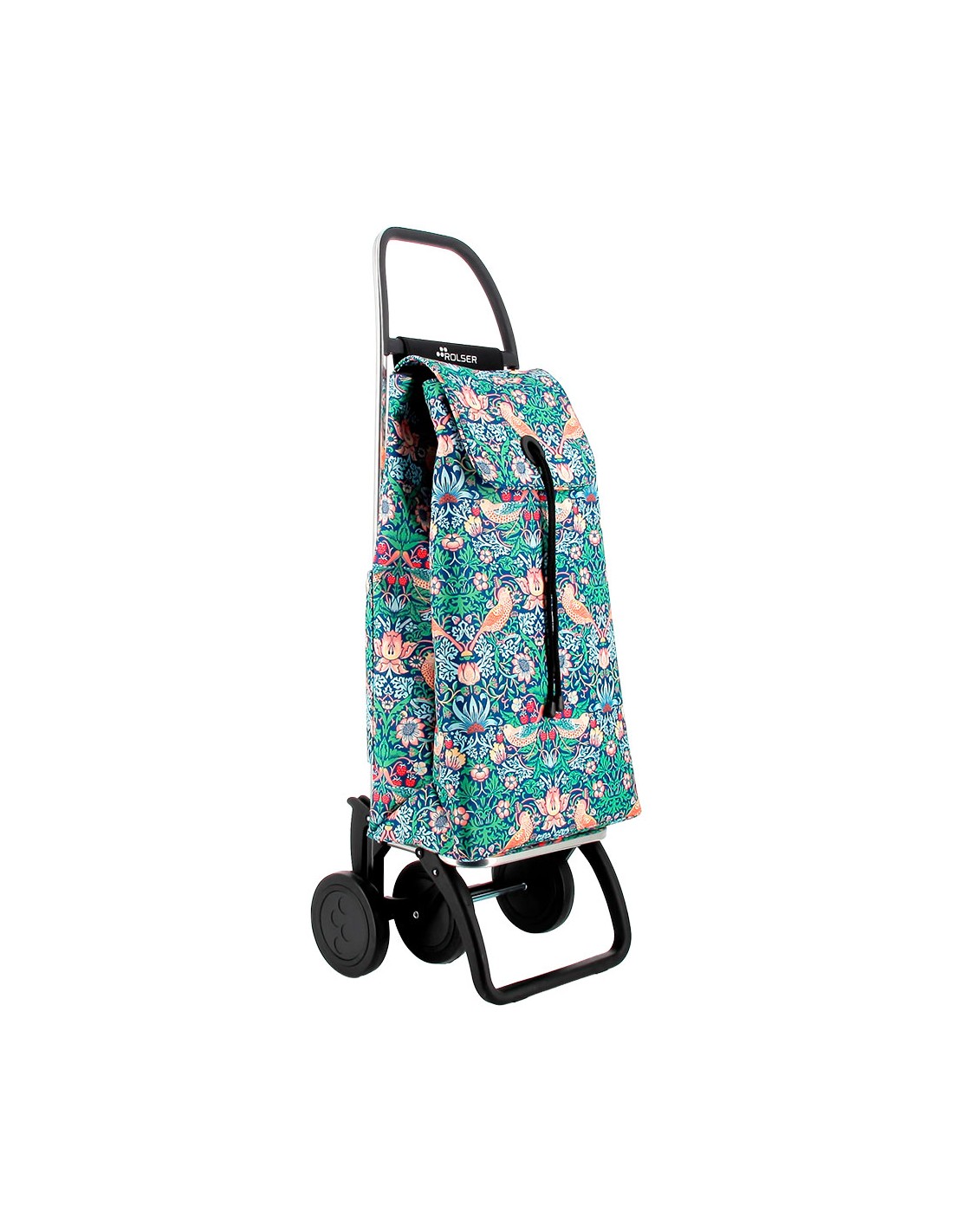 Carro i-max mf 4 de aluminio de 2/4 ruedas. posición de dos ruedas cuando está vacío y empujando delante cuando está lleno con 4 ruedas. chasis con apoyo delantero y base inferior abatible para guardar en espacios pequeños. bolsa i-max mf de 43 l, modelo william morris, tiene formato tipo mochila, doble bolsillo interior, cierre con cordón, ojal en la solapa, bolsillo trasero con cremallera y se adapta fácilmente al chasis con una solapa. carga recomendada: 25 kg carga máxima: 40 kg. dimensiones plegado: 390 x 215 x 1050 mm. dimensiones abierto 4 ruedas: 390 x 470 x 925 mm