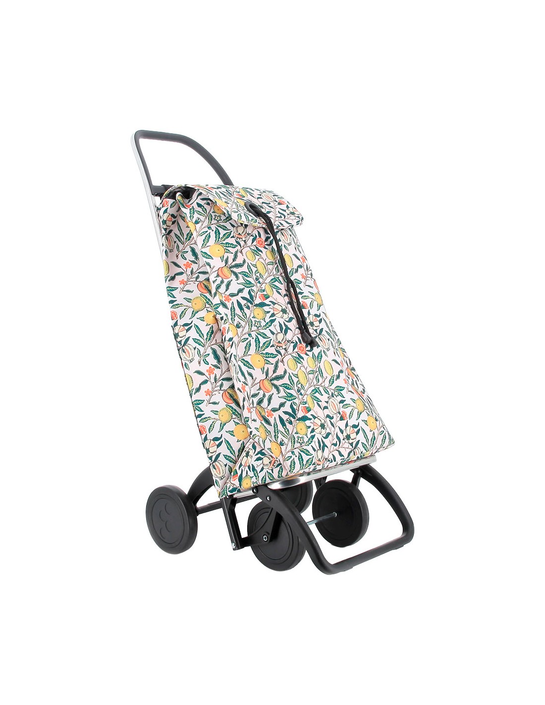 Carro imax mf 4 de aluminio de 2/4 ruedas. posición de dos ruedas cuando está vacío y empujando delante cuando está lleno con 4 ruedas. chasis con apoyo delantero y base inferior abatible para guardar en espacios pequeños. bolsa i-max mf de 43 l, modelo william morris, tiene formato tipo mochila, doble bolsillo interior, cierre con cordón, ojal en la solapa, bolsillo trasero con cremallera y se adapta fácilmente al chasis con una solapa. carga recomendada: 25 kg carga máxima: 40 kg. dimensiones plegado: 390 x 215 x 1050 mm. dimensiones abierto 4 ruedas: 390 x 470 x 925 mm