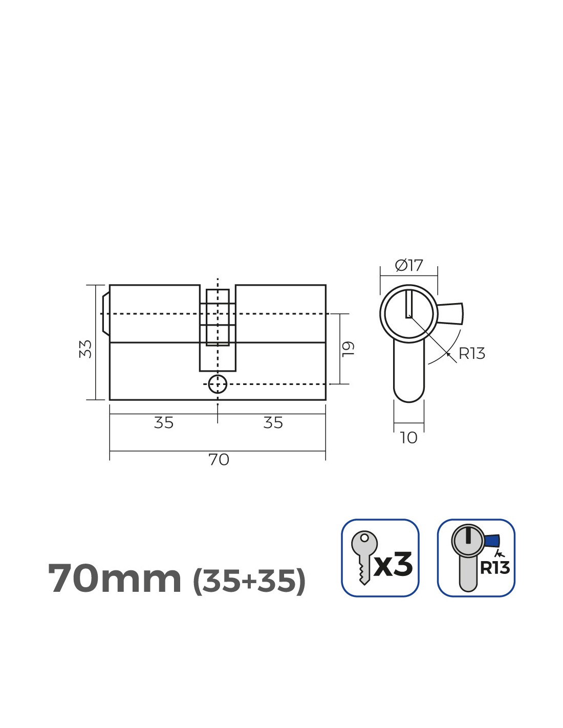 Cilindro iridium m irm3030nd níquel 60mm (30+30mm) leva larga 15mm. con 5 llaves de...