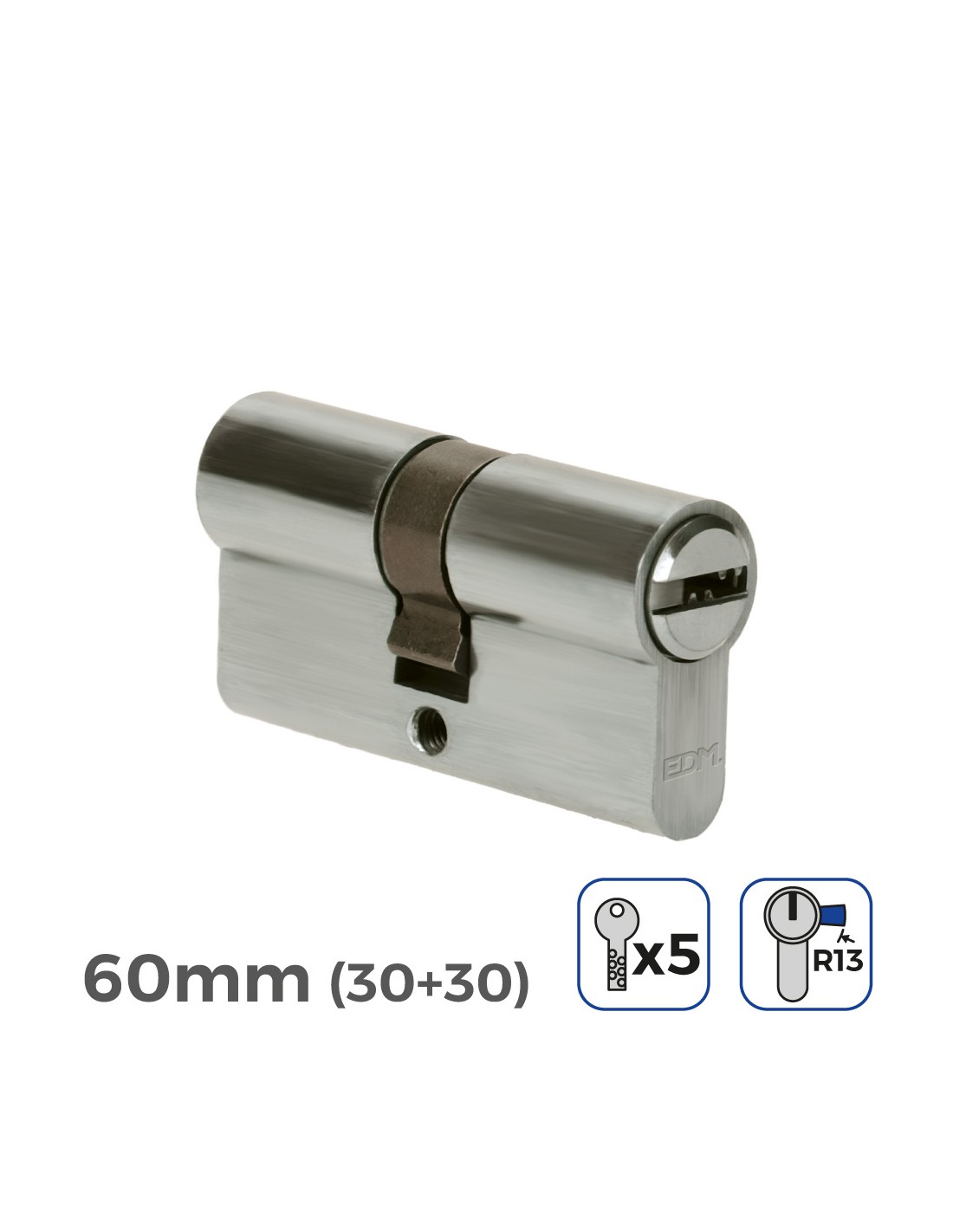 Cilindro de latón 60mm (30+30mm) leva corta r13 con 5 llaves de seguridad incluidas