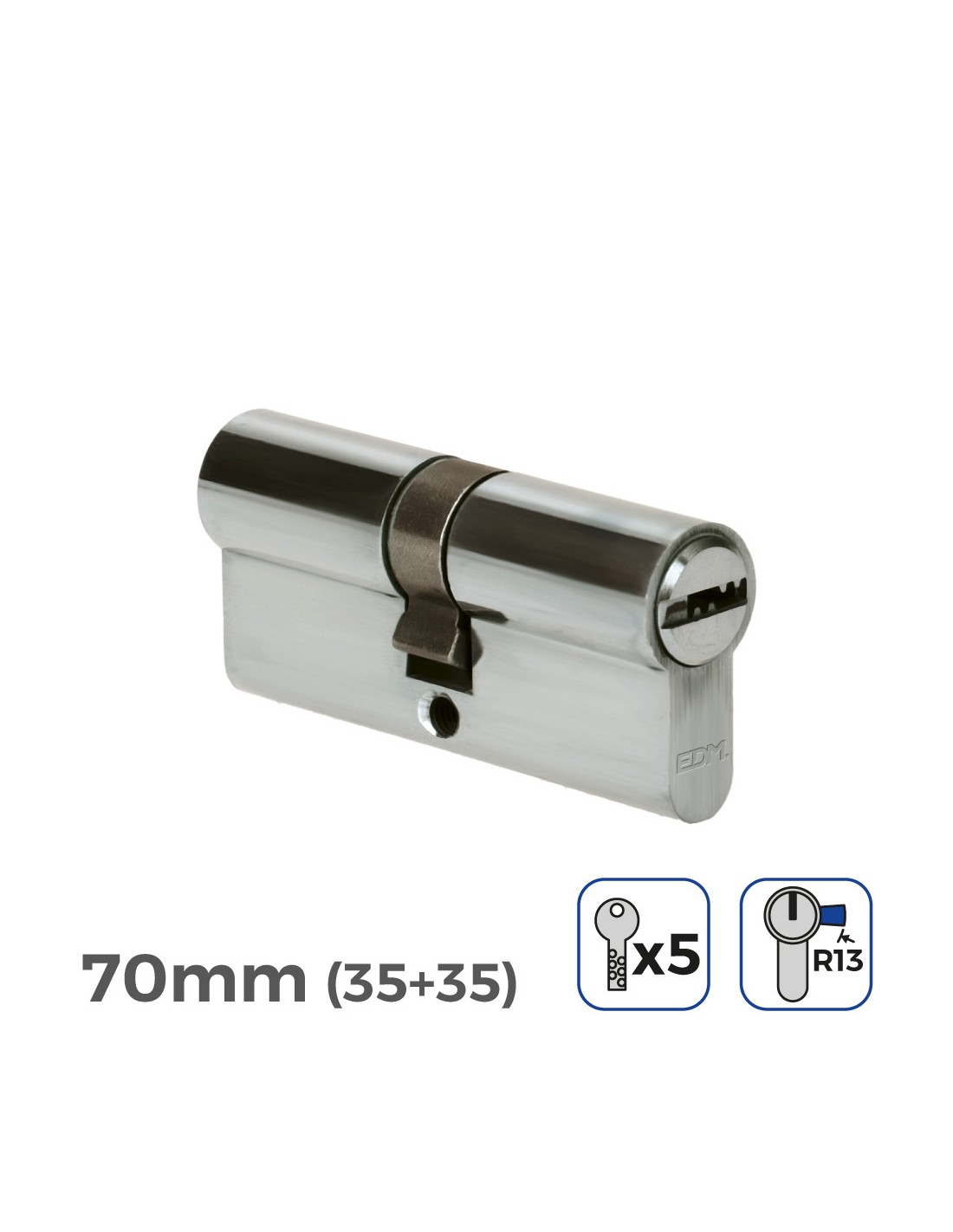 Cilindro 60mm (30+30mm) niquelado, leva corta r13 con 5 llaves seguridad incluidas