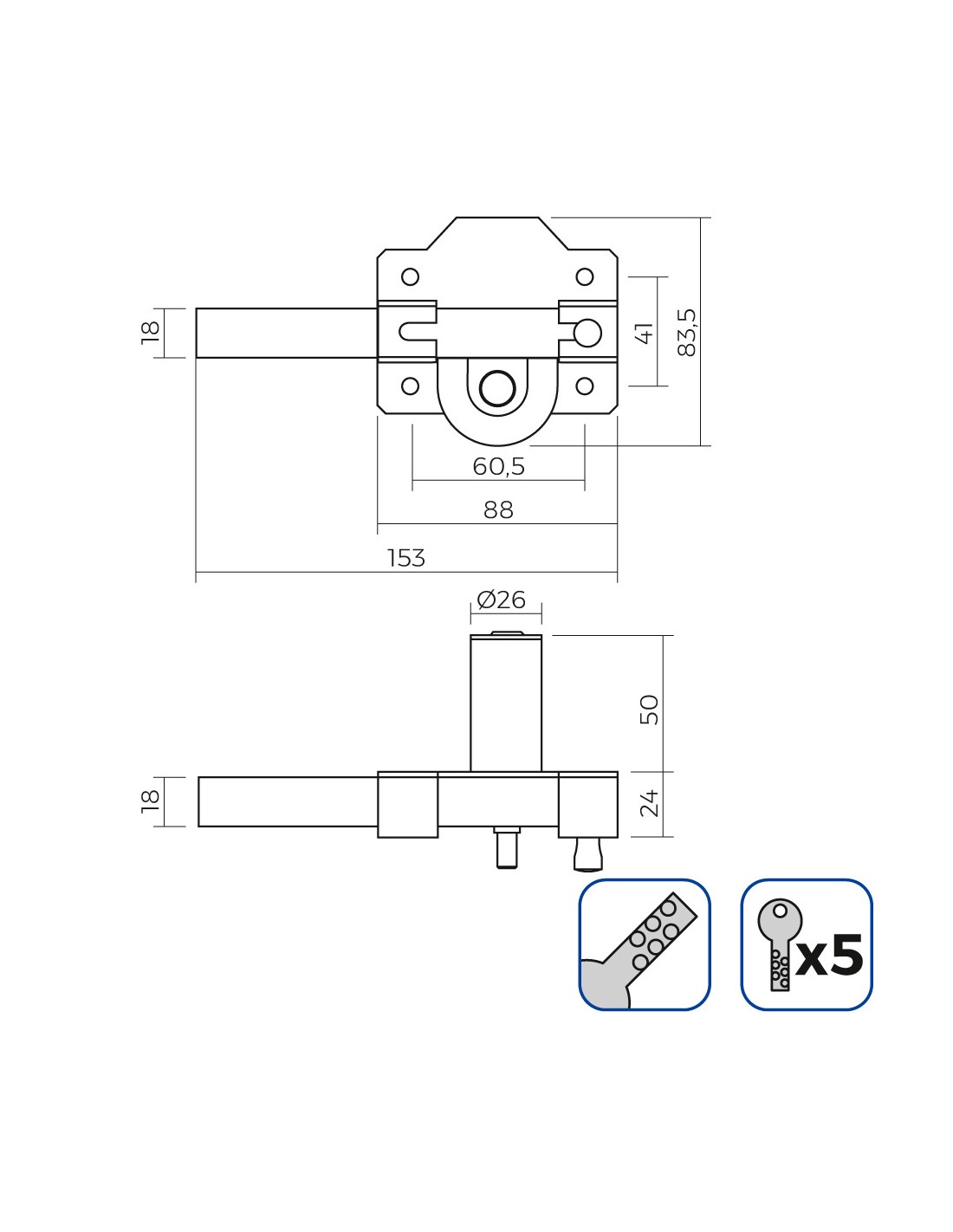 Cerradura sobreponer con cilindro 5124a entrada 80mm. mano derecha 95124ahe08d lince