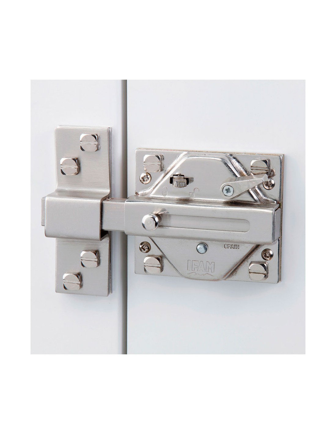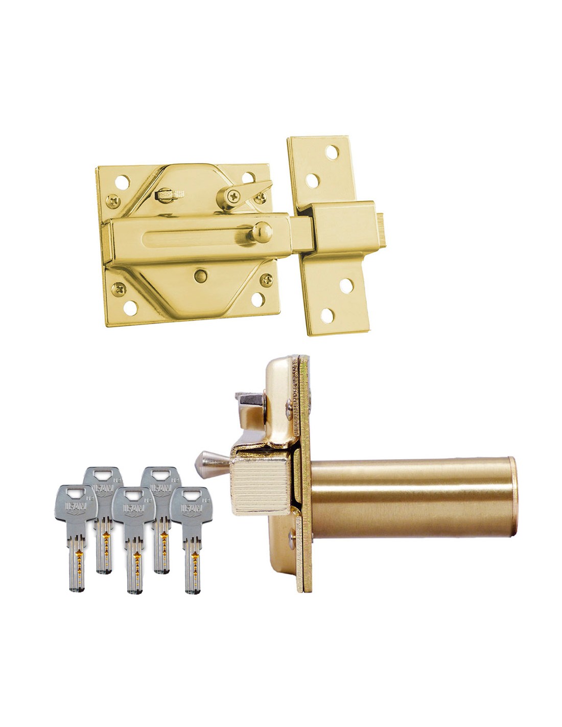 Cerrojo cs88l m50. acabado latonado. cilindro de 50mm. con 5 llaves de seguridad. cuerpo fabricado en acero. palanca cuadrada fabricada en acero, de espesor 17mm. apertura y cierre con 4 vueltas de palanca. apto para puertas de apertura izquierda o derecha. incluye cilindro de 50mm de largo. ifam