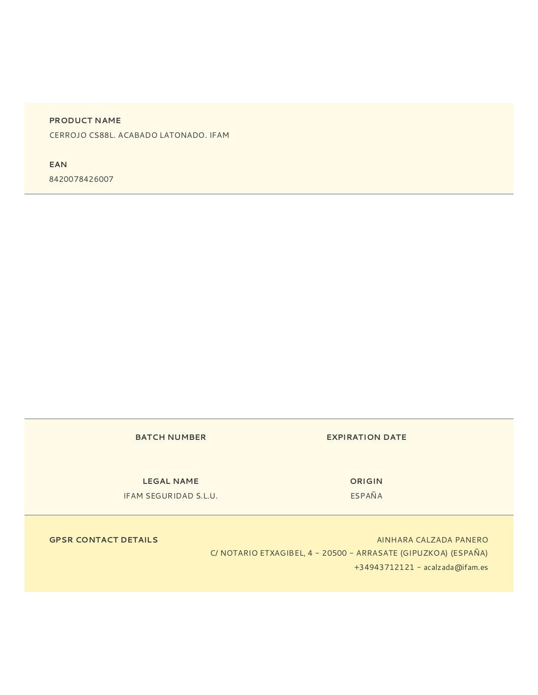 Cerrojo cs88l. acabado latonado. cuerpo fabricado en acero. palanca cuadrada fabricada en acero, de espesor 17mm. apertura y cierre con 4 vueltas de palanca. apto para puertas de apertura izquierda o derecha. ifam