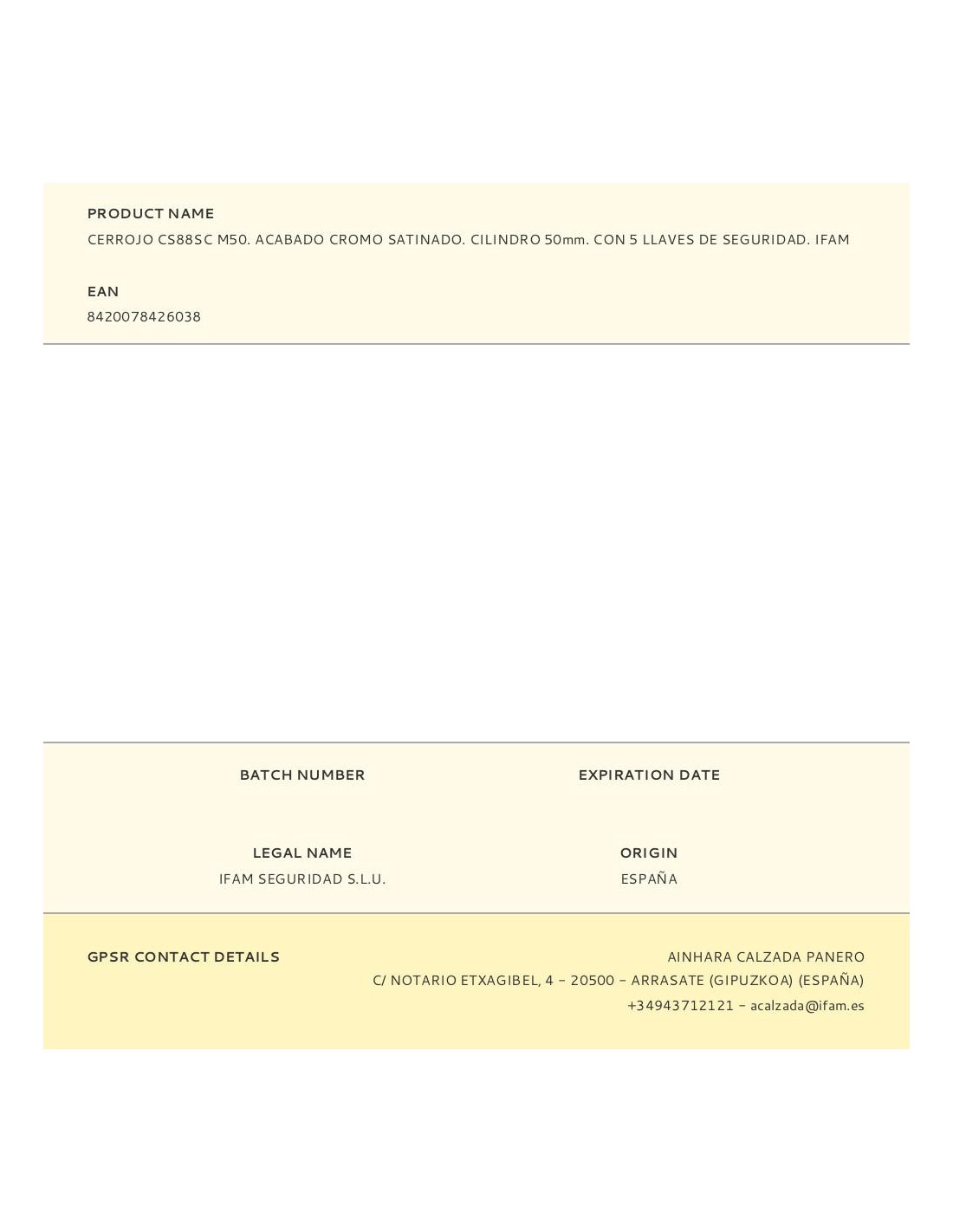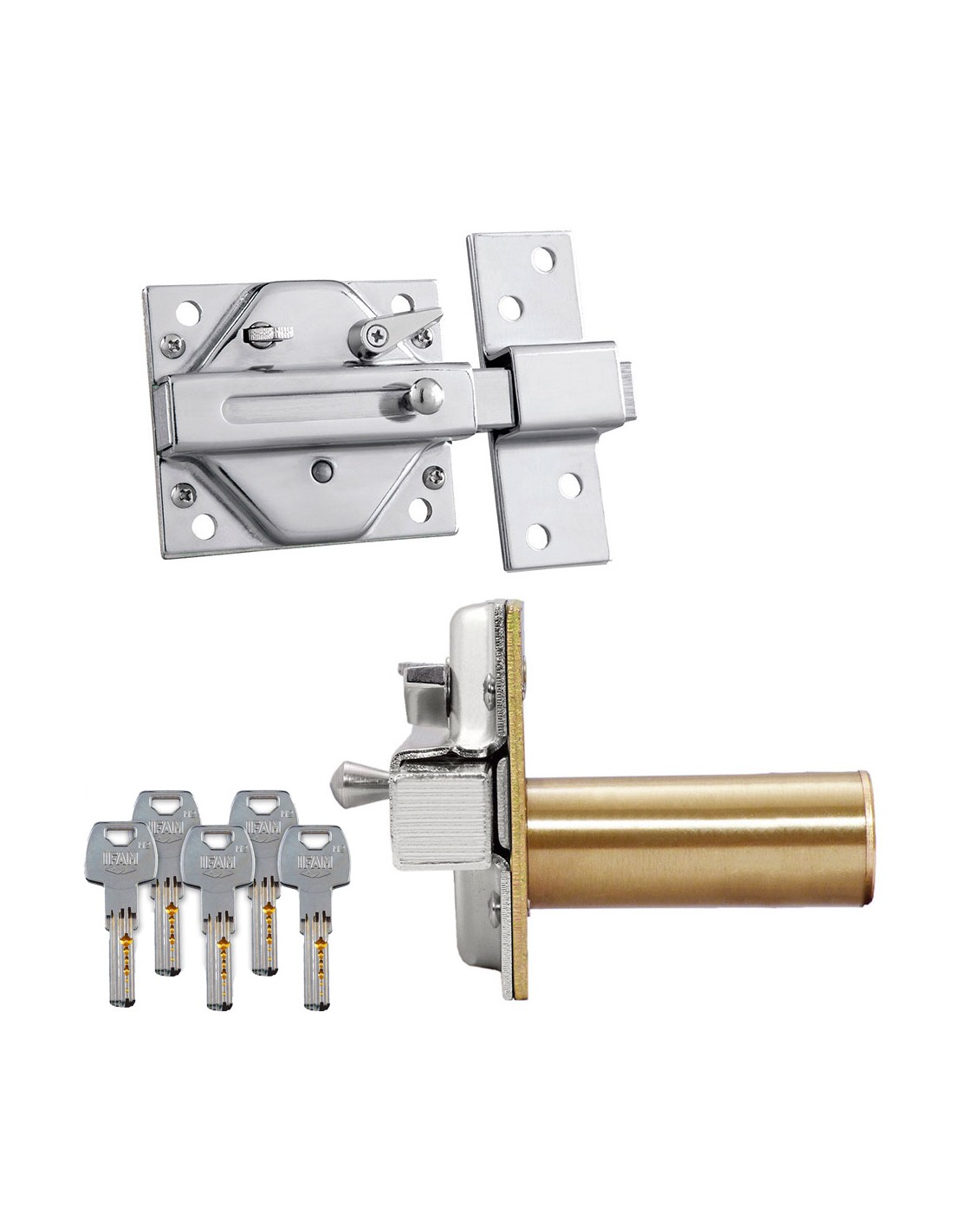 Cerrojo cs88sc m50. acabado cromo satinado. cilindro 50mm. con 5 llaves de seguridad. cuerpo fabricado en acero. palanca cuadrada fabricada en acero, de espesor 17mm. apertura y cierre con 4 vueltas de palanca. apto para puertas de apertura izquierda o derecha. incluye cilindro de 50mm de largo. ifam