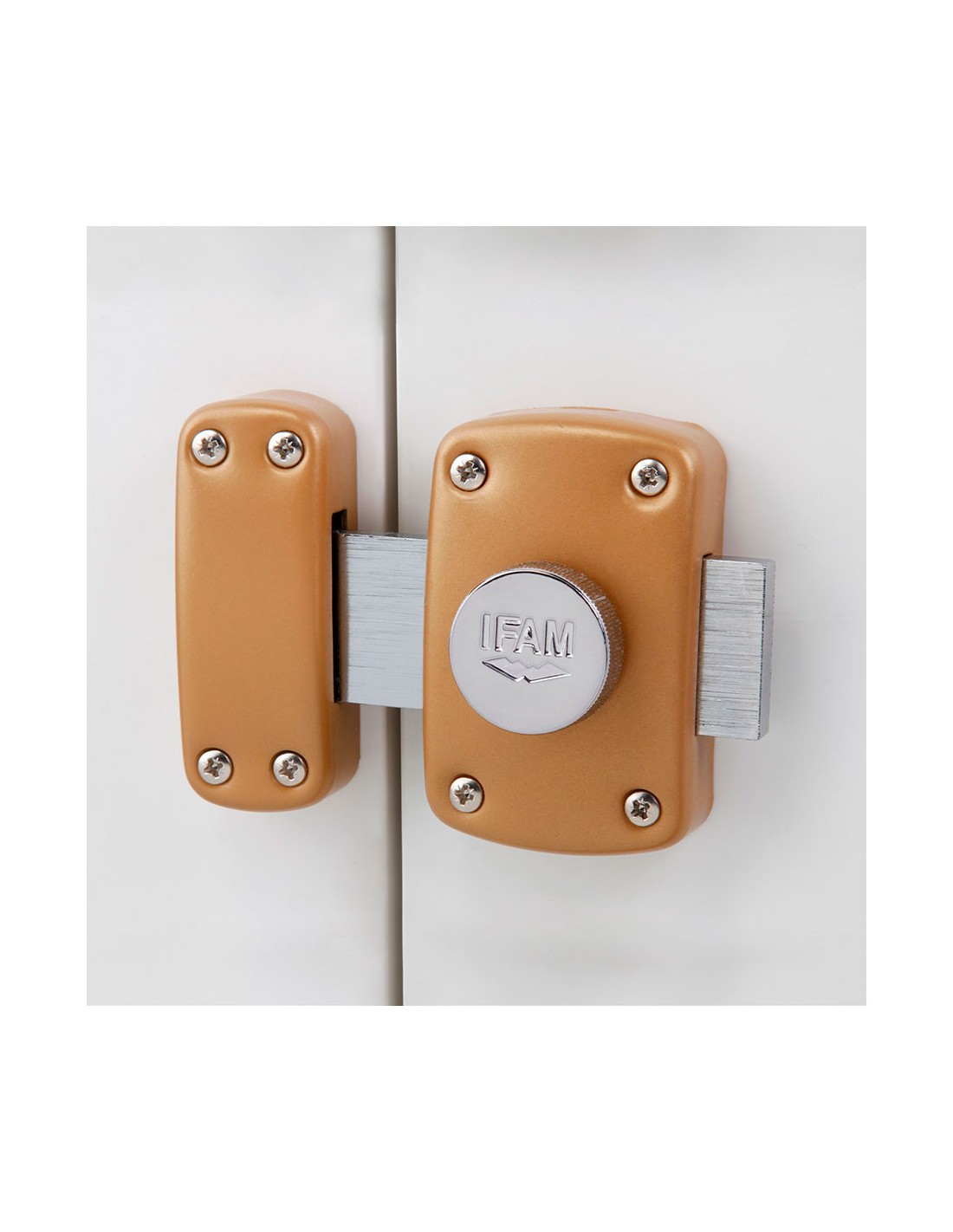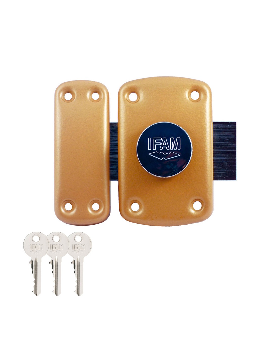 Cerrojo b5/50. acabado latonado. cuerpo y cerradero fabricados en acero. palanca fabricada en acero cromado,longitud de 110mm, espesor de 9mm. cilindro de de 5 pitones, cierre con 2 vueltas, apto para puertas de apertura izquierda o derecha. llave de serreta. se suministra con 3 llaves llave compatible con: cilindros serie f5s y cerrojo d5. ifam