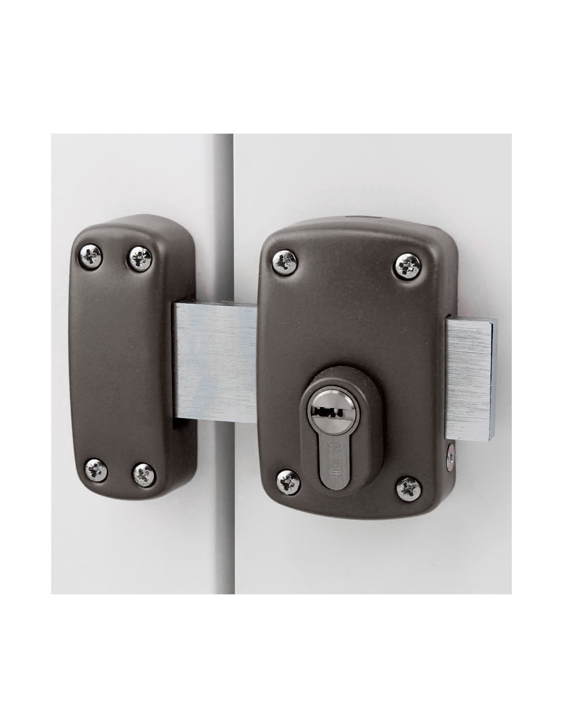 Cerrojo x5. acabado gris oscuro. cuerpo y cerradero fabricados en acero. palanca fabricada en acero cromado, espesor de 9mm. cierre con 2 vueltas, no incluye cilindro. apto para puertas de apertura izquierda o derecha. ifam