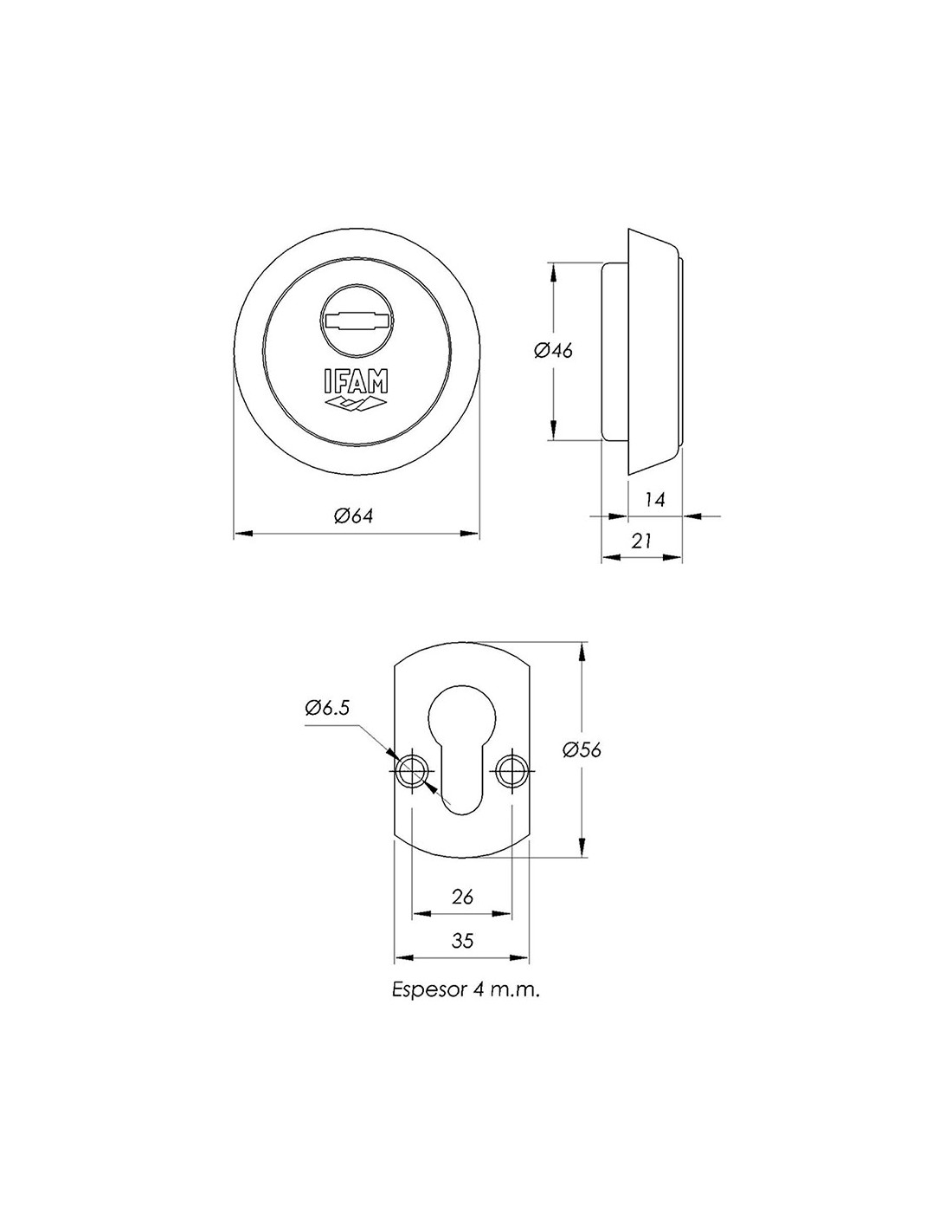 Escudo es610cm. acabado cromo. ø64mm. escudo es610 cuenta con un núcleo reforzado con placas de acero que impide los ataques con taladro. pero además, este escudo cuenta con protección antimordaza y anti extracción. ifam