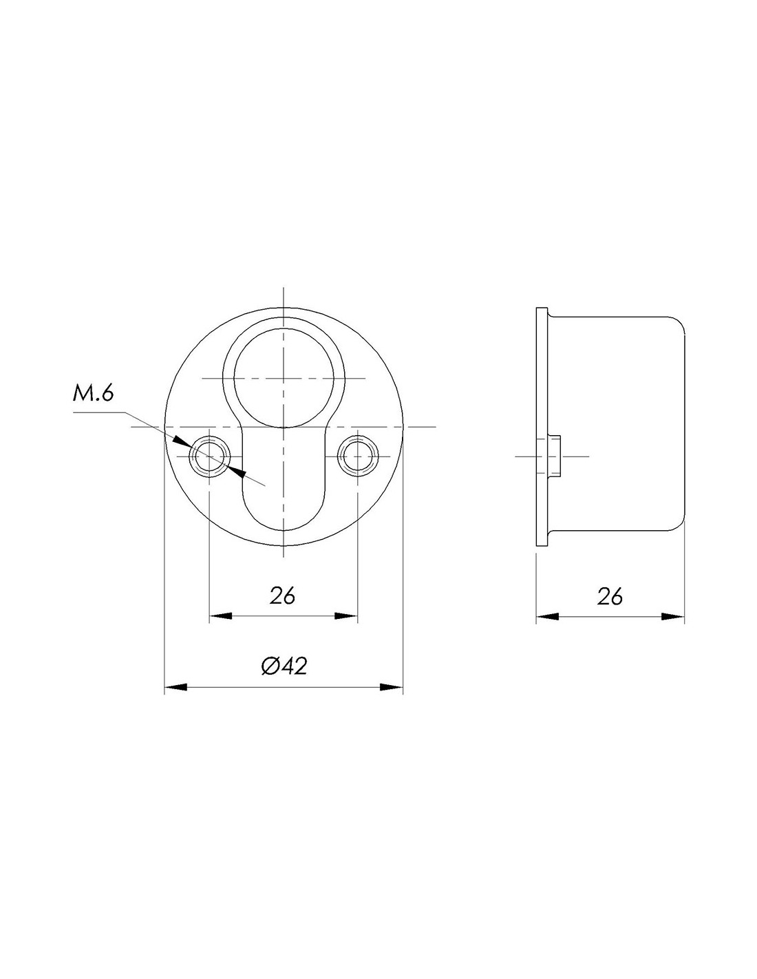 Escudo ez roscado. acabado en cromo. ø42x26mm. fabricado en acero. concebido como adaptador de cilindros europerfil.- instalación con tornillos roscados. ifam