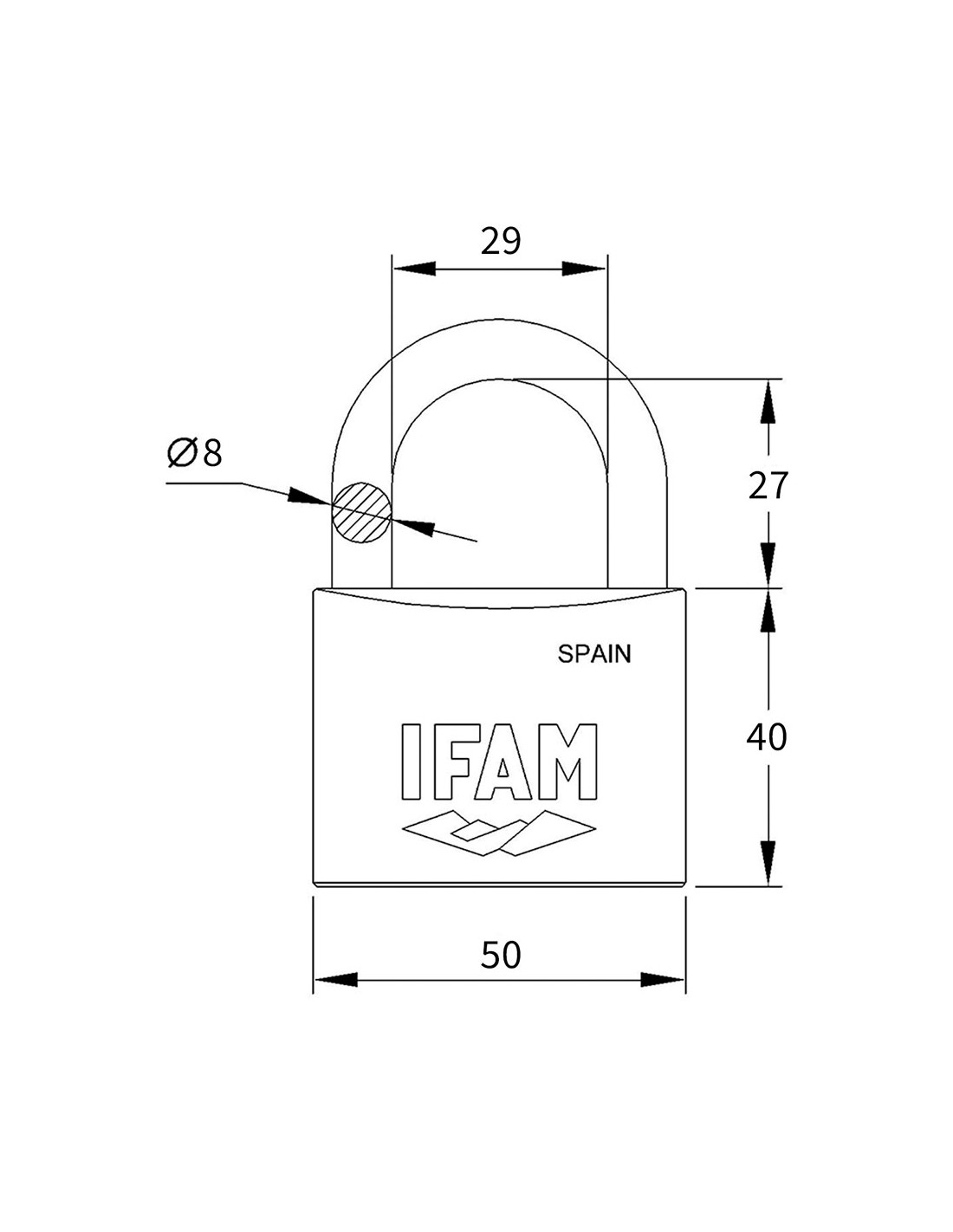 Candado inox 50 inoxidable 50mm. con 2 llaves. arco normal. ofrece una alta resistencia a la oxidación en ambientes marinos y de alto porcentaje de humedad, además de un buen nivel de seguridad. arco normal. ifam