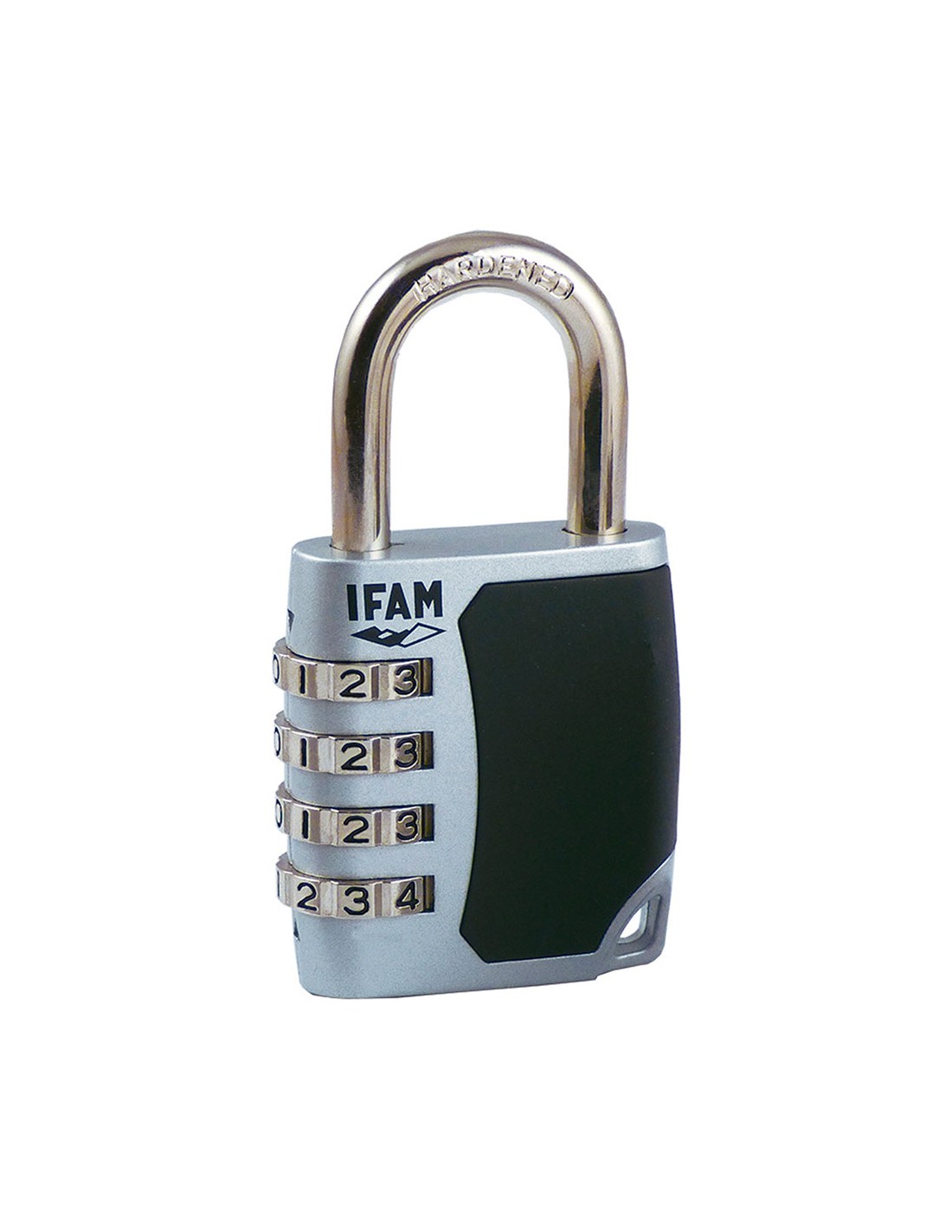 Candado c45s zinc 44,5mm. arco ø6,3mm con combinación. cuerpo fabricado en aleación zinc, arco fabricado en acero endurecido 4 rodillos de 10 dígitos cada uno. aptos para el cierre de taquillas en gimnasios, maletas de tamaño mediano o grande, baúles y contenedores, etc. ifam