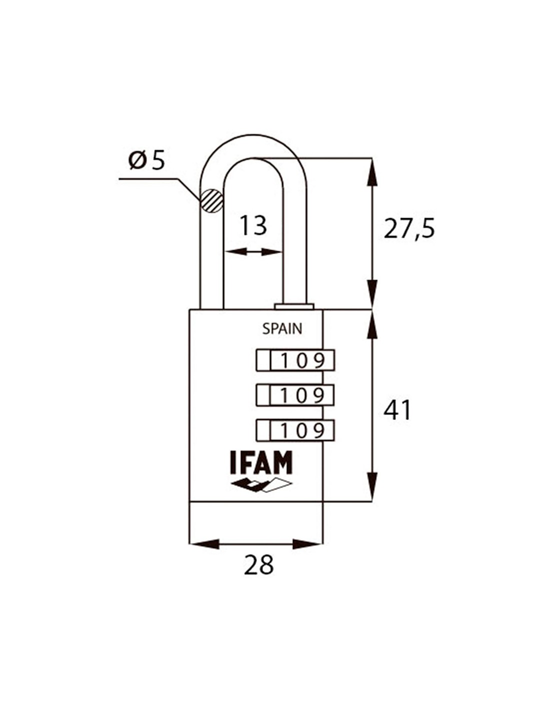 Candado col combi30 violeta 30mm. arco ø5mm. con combinación. cuerpo fabricado en aluminio, arco fabricado en acero cromado, ifam