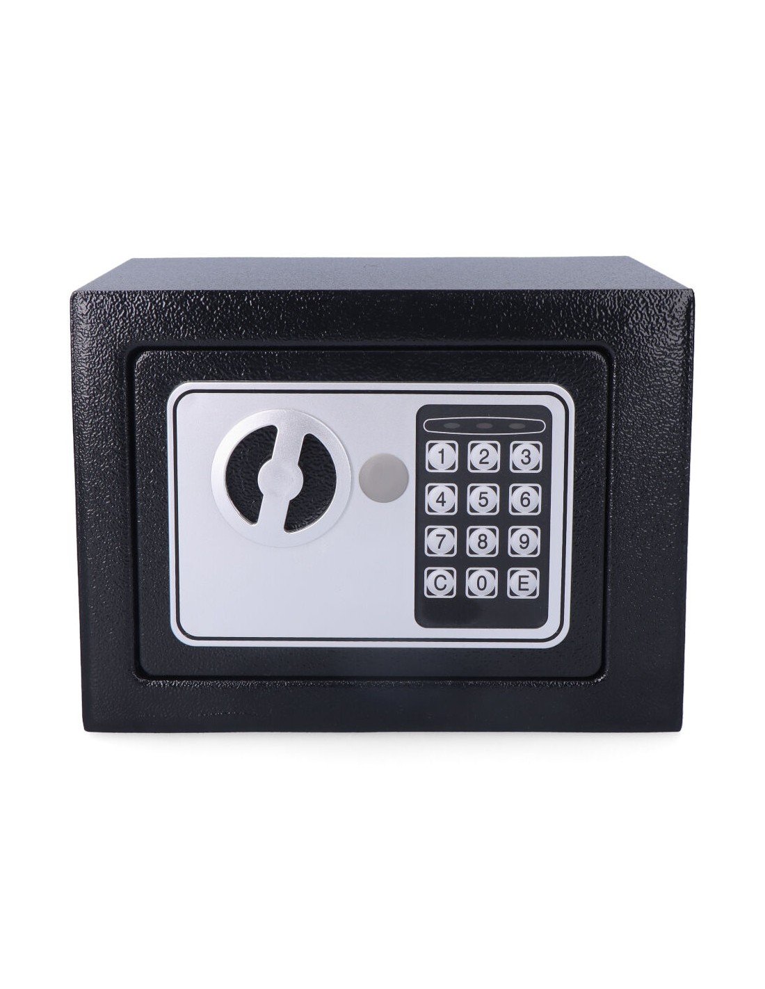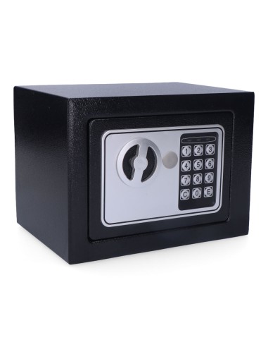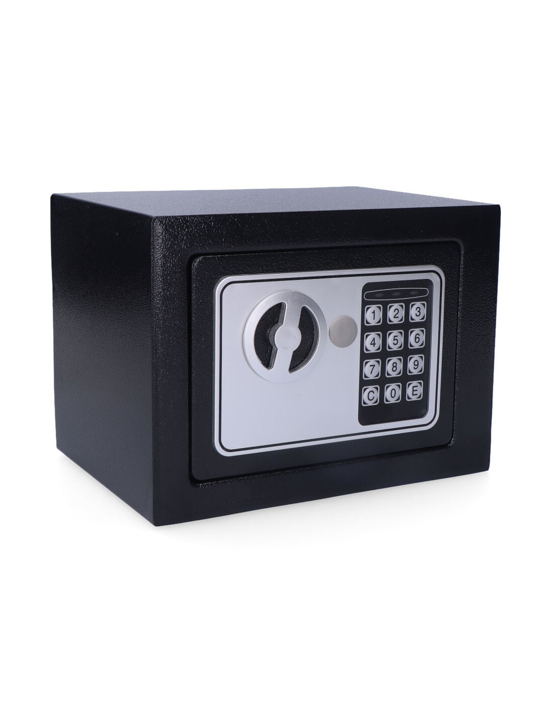 Caja fuerte electrónica cfc03 con combinación numérica (pin de 3-8 digitos), y llave de apertura para emergencia. material de acero (cuerpo de 3 mm - puerta de 1 mm). incluye 4 pilas aa, 2 llaves de borja. color negro. dimensiones: 23 x 17 x 17 cm
