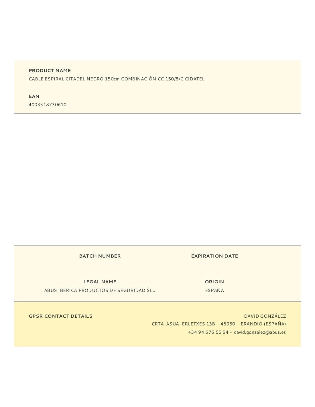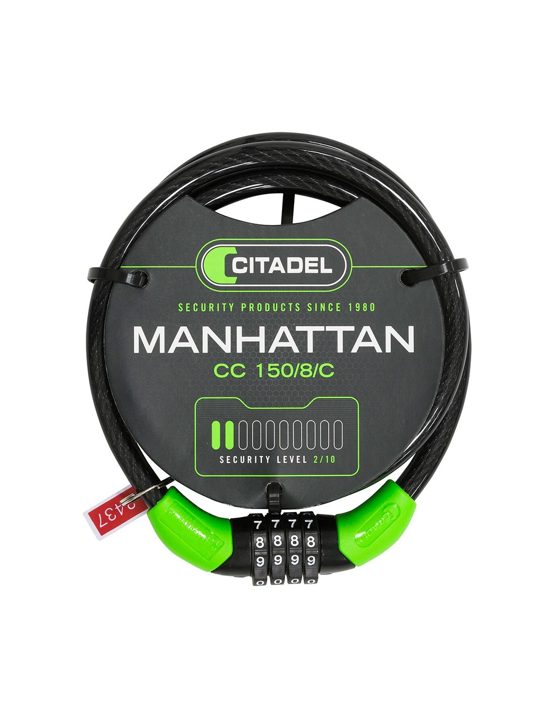 Cable espiral citadel negro 150cm combinación cc 150/8/c cidatel combinación cable de acero de 8mm con apertura mediante combinación de 4 digitos reprogramable. cable en espiral de 150cm para la fijación del vehiculo a objetos fijos.