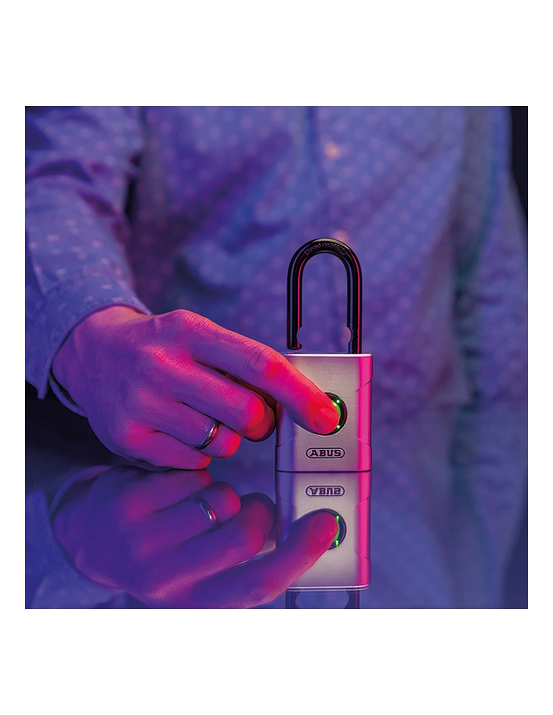 Candado de huella abus touch de 45mm 57/45 abus candado de apertura por huella dactilar abus touch de 45mm. ip68, posibilidad de alta de hasta 20 huellas dactilares y dos administradores. tono de bateria baja. facil cambio de pilas.