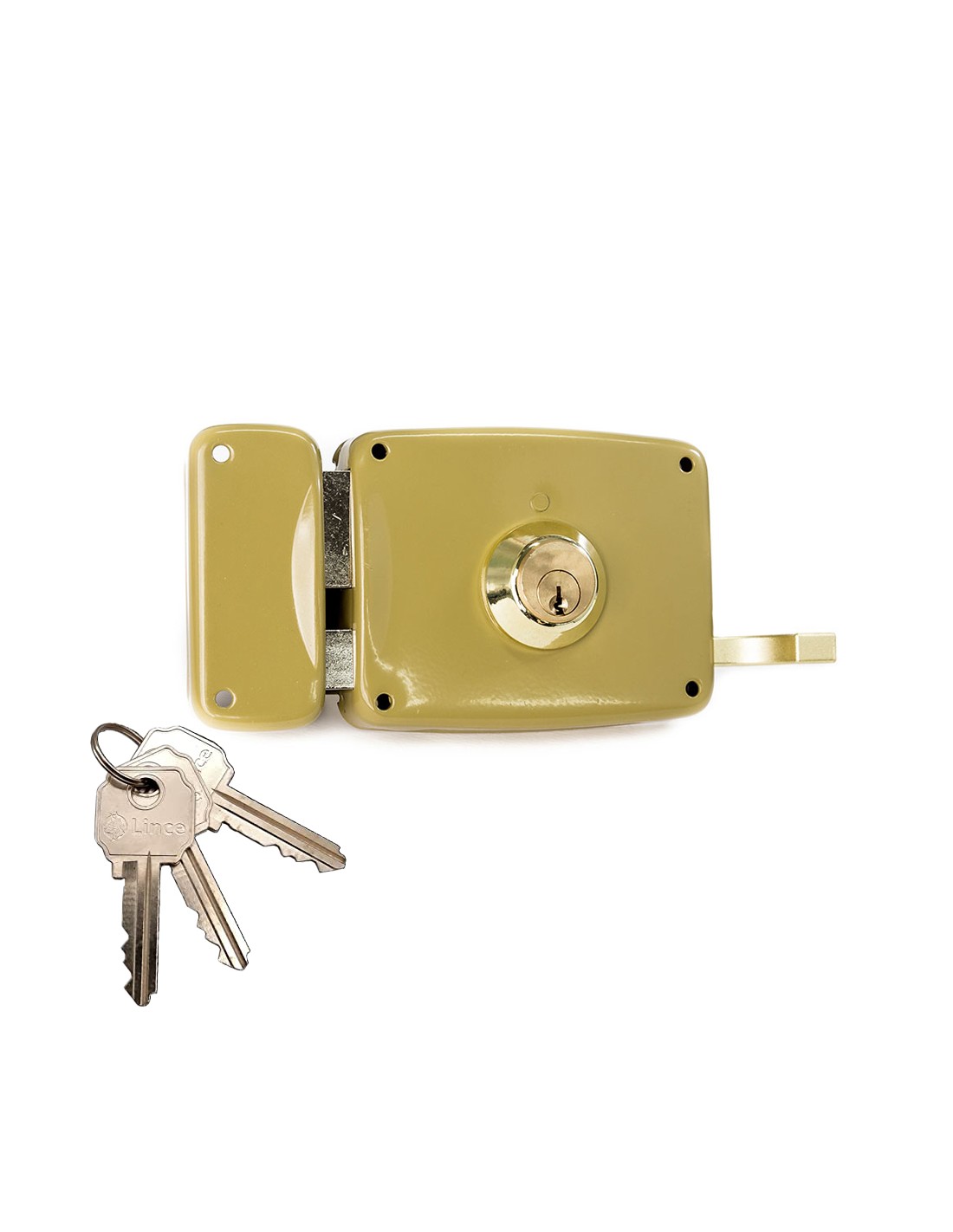 Cerradura sobreponer con cilindro 5125a entrada 120mm. mano izquierda 95125ahe12i lince cerradura sobreponer 5125a. cuando no es posible instalar una cerradura de embutir, las cerraduras de sobreponer son la solución adecuada. lince ofrece una amplia gama donde elegir. es la seguridad que se ve. serie equipada con tubo de defensa giratorio. cerradura con cierre mediante picaporte, accionado mediante el tirador incorporado y palanca deslizante de 2 vueltas accionables con llave en los modelos 8 y 10, y 3 vueltas en los modelos 12 y 14. guarda mano.se suministra con 3 llaves tipo serreta en acero níquel y un escudo embellecedor. acabados: bicapa-oro o bicapa-plata. medidas envase: 10x15x9,7cm. peso: 1,125kg.