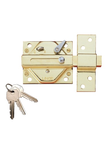 Cerrojo tradicional 2930 acabado hierro latonado 92930hl lince cerrojo de sobreponer 2930. los característicos e inconfundibles cerrojos lince, siempre han sido unos referentes en la seguridad adicional para proteger todo aquello que más apreciamos. los cerrojos de la serie 2930 son el complemento de cierre ideal para adaptarse a todo tipo de puertas ofreciendo la máxima protección para viviendas, comercios, oficinas, colegios, edificios sociales. el cierre del cerrojo se realiza mediante una palanca deslizante de 4 vueltas de giro, accionables con la llave desde el exterior y, por el interior, el cierre se realiza de manera rápida y segura a través del tirador. el cerrojo viene equipado con un tubo de defensa antigiro y con el dispositivo de bloqueo apertura a/c (abierto / cerrado), el cual nos permitirá desde el interior condenar el acceso con llave. se suministra con 3 llaves tipo serreta en acero níquel. acabados: latonado, cromo brillo, cobre viejo o bronce inglés. medidas envase: 10x16x6cm. peso: 1,110kg.