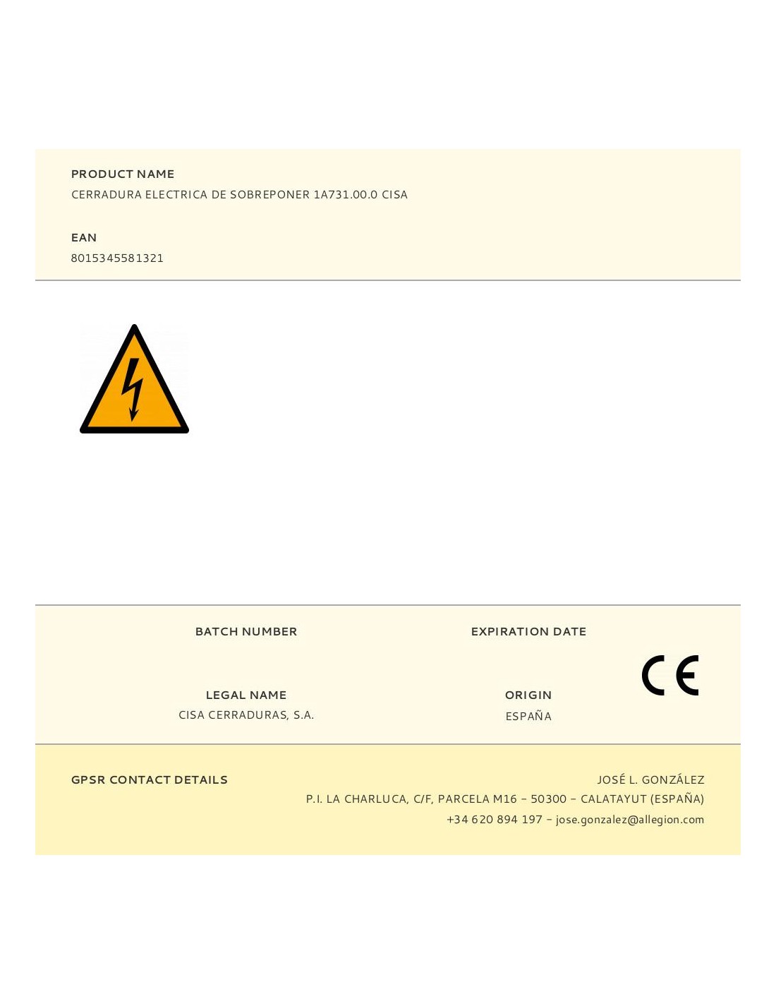 Cerradura electrica de sobreponer 1a731.00.0 cisa cerradura electrica d sobreponer. para puerta metalica boton pulsador con 3 llaves