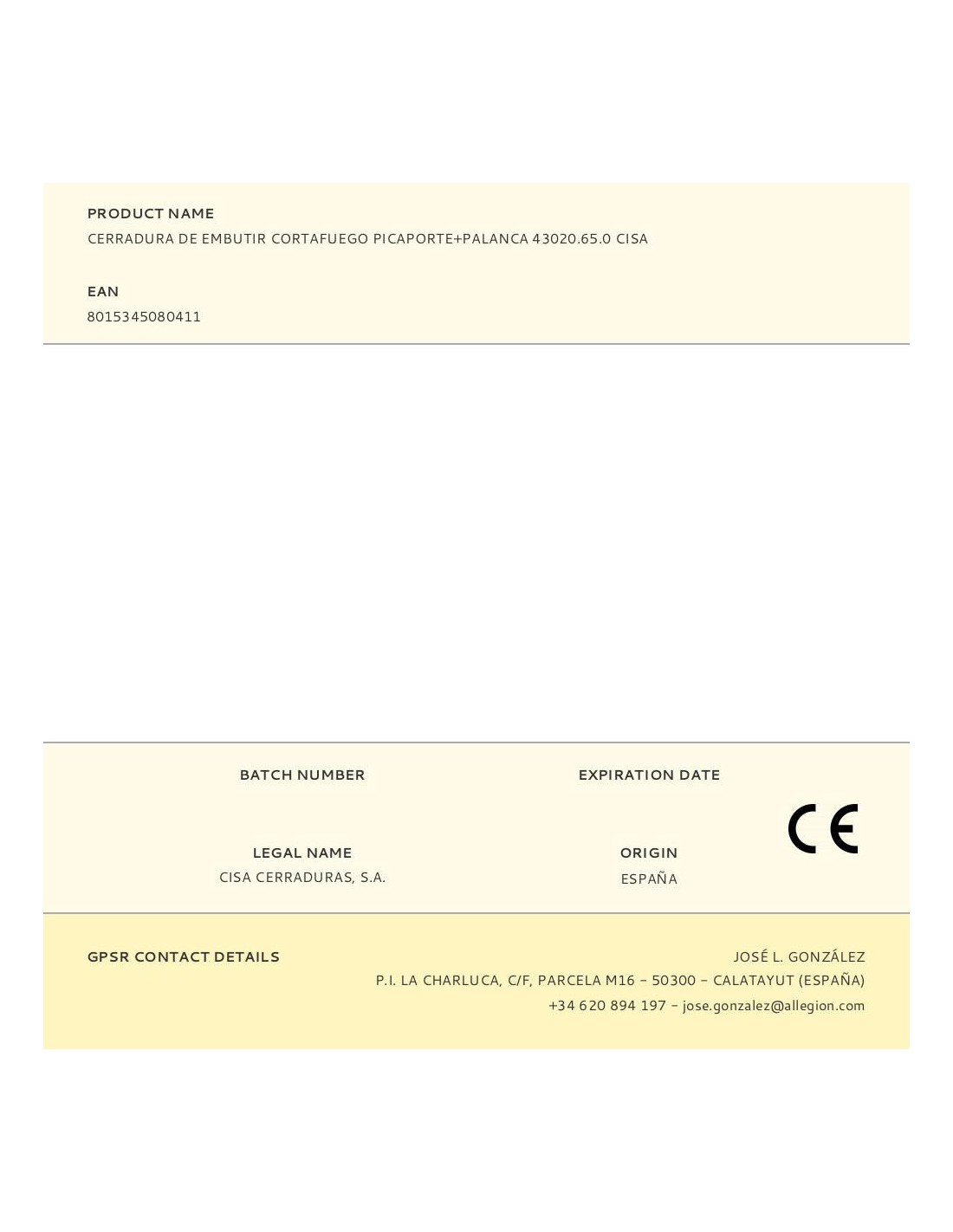 Cerradura de embutir cortafuego picaporte+palanca 43020.65.0 cisa cerradura embutir cortafuego picaporte y palanca, versión mecánica funcionamiento, picaporte accionado por llave y por manilla y palanca accionada por llave.acabado en acero cincado. cuadro manilla 9mm