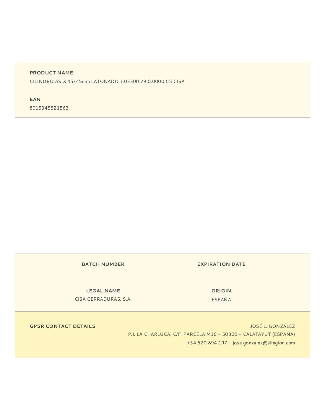 Cilindro asix 45x45mm latonado 1.0e300.29.0.0000.c5 cisa cilindro asix 45x45 latonado con sistema de 6 pitones y contrapitones con llave reversible de puntos. 5 llaves