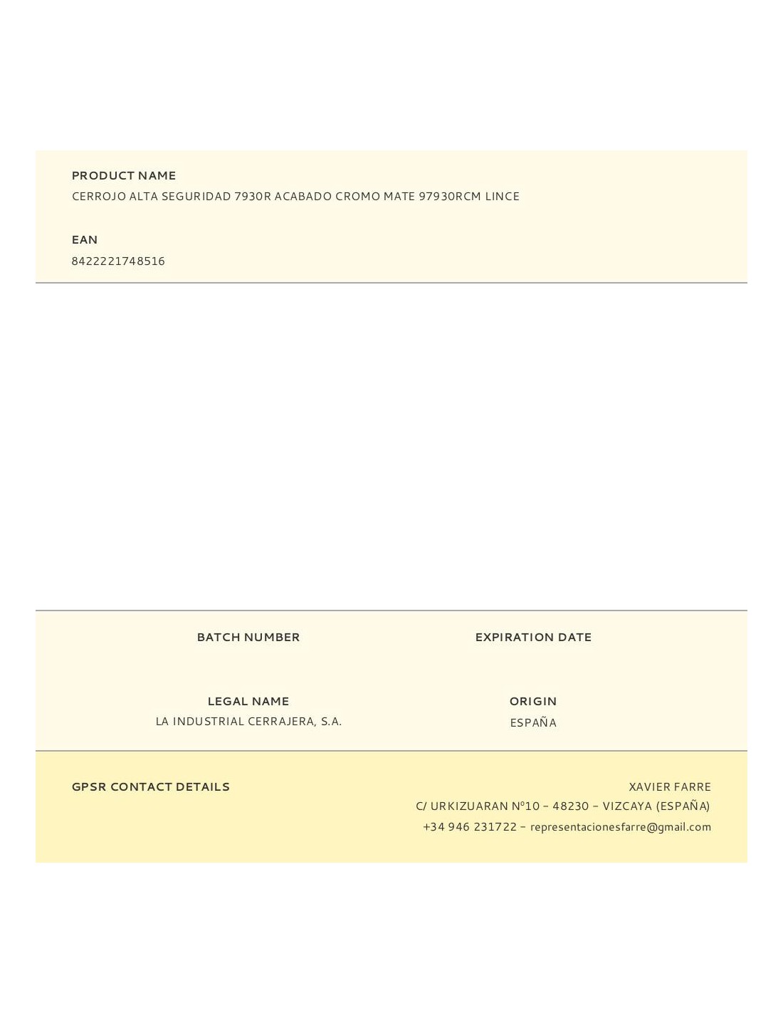 Cerrojo alta seguridad 7930r acabado cromo mate 97930rcm lince