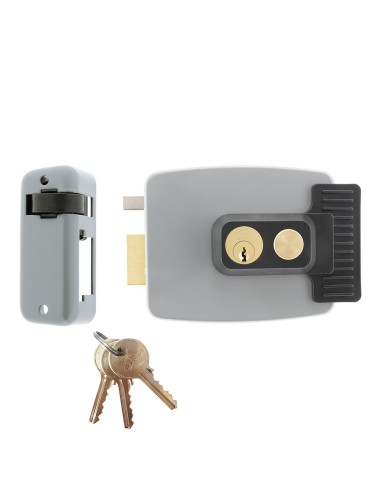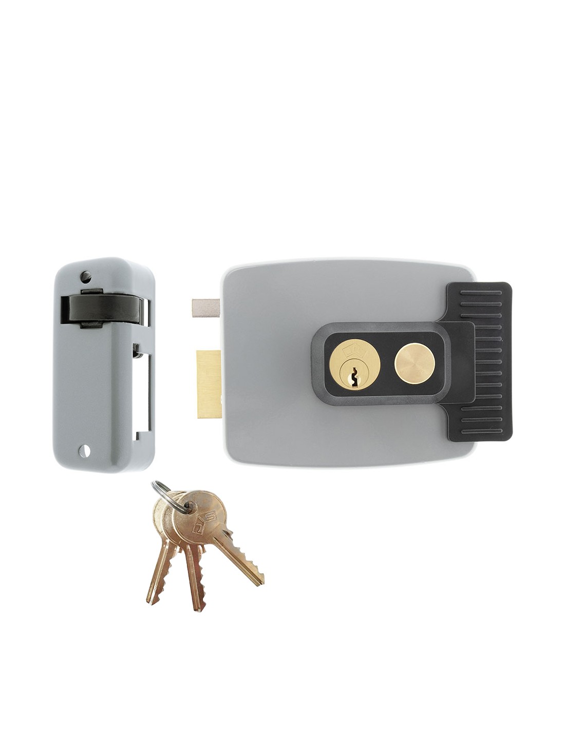Electro cerradura de sobreponer izquierda jis 1903i jis electro cerradura de sobreponer 12v/ac cilindro regulable de aguja de 30 a 80mm. pulsador de apertura. guarda mano izquierda.3 llaves