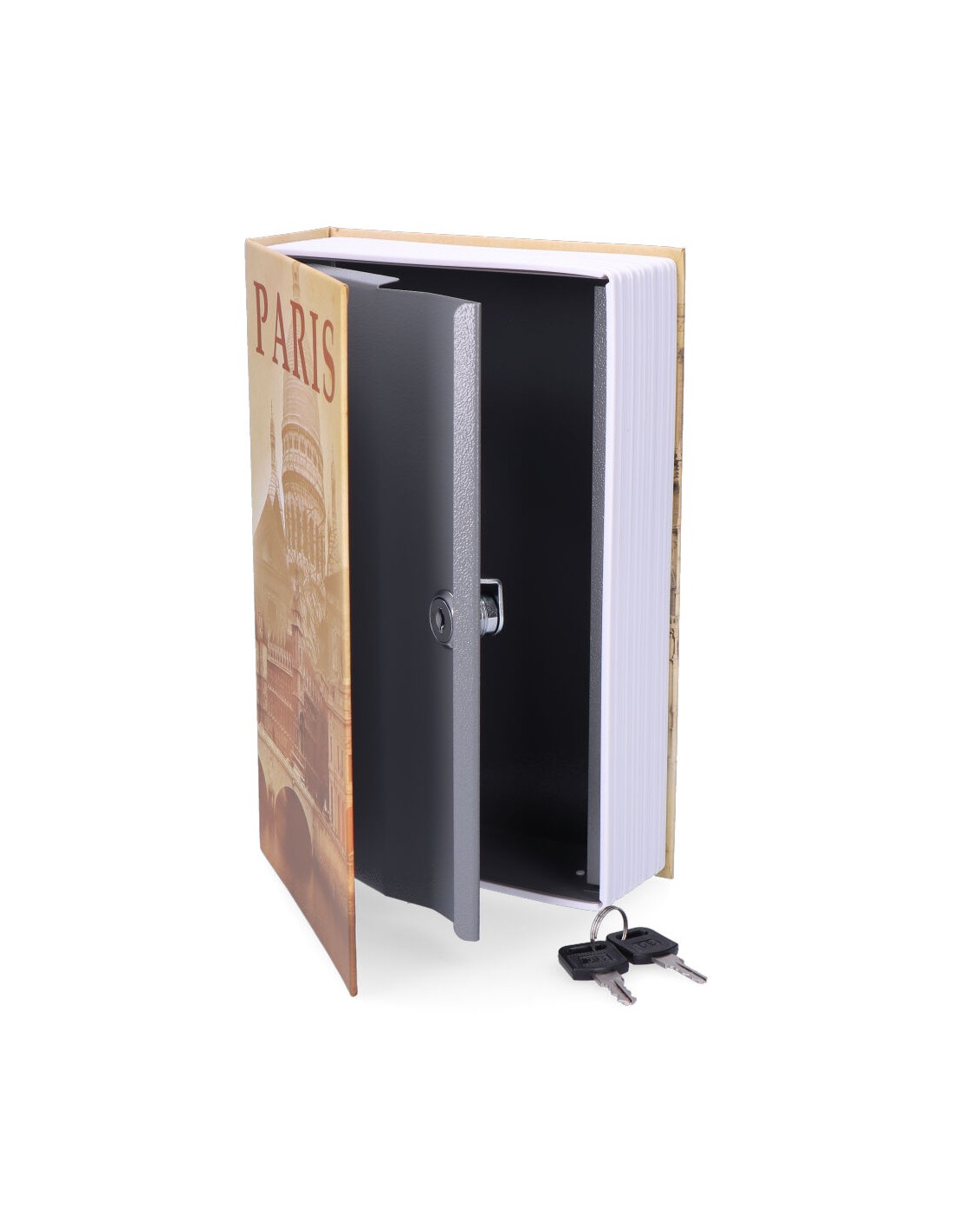 Libro seguridad paris cfc08. en su interior oculta una caja de seguridad. apertura mediante llave. material acero.acabado gris. (tornillos no incluidos)