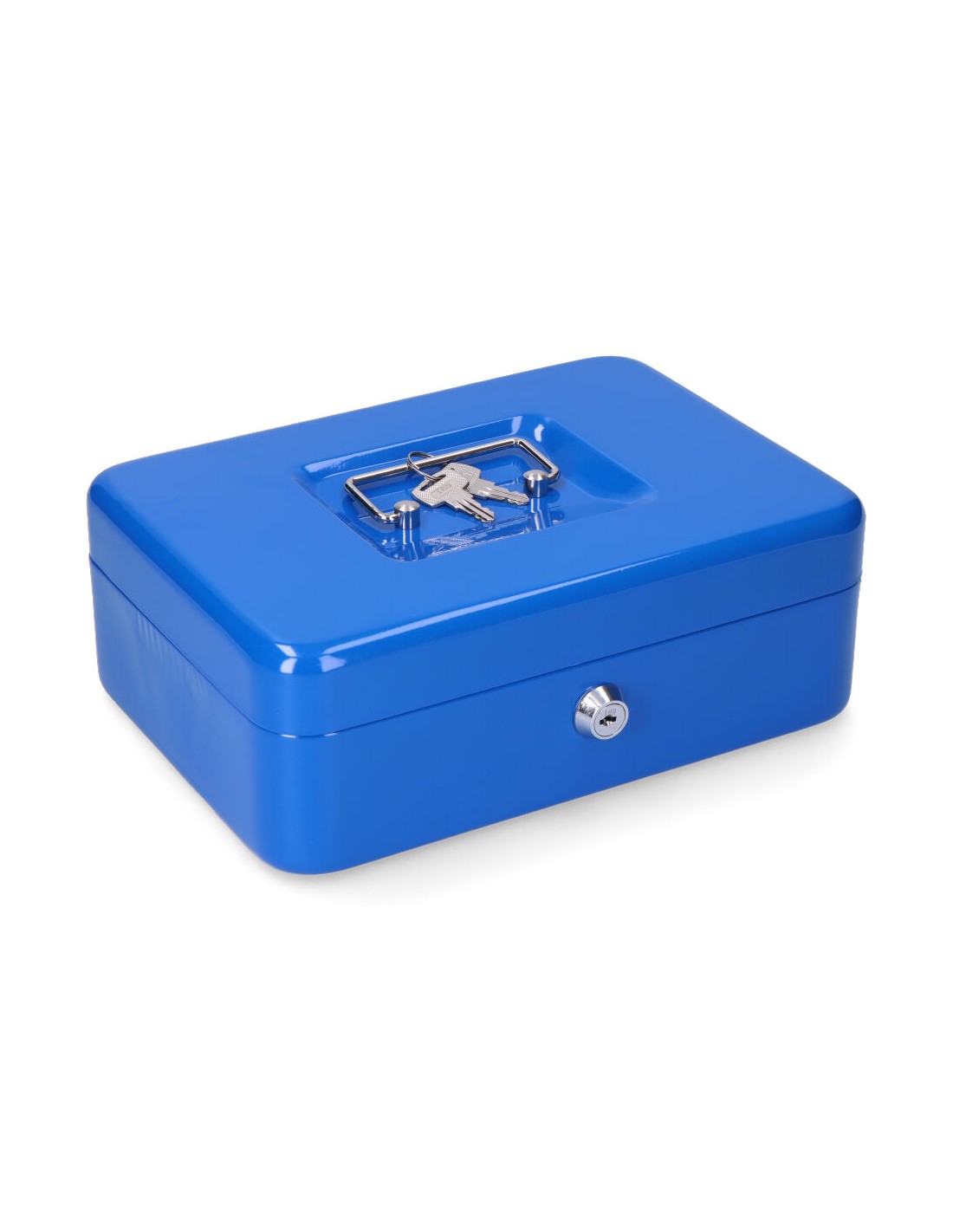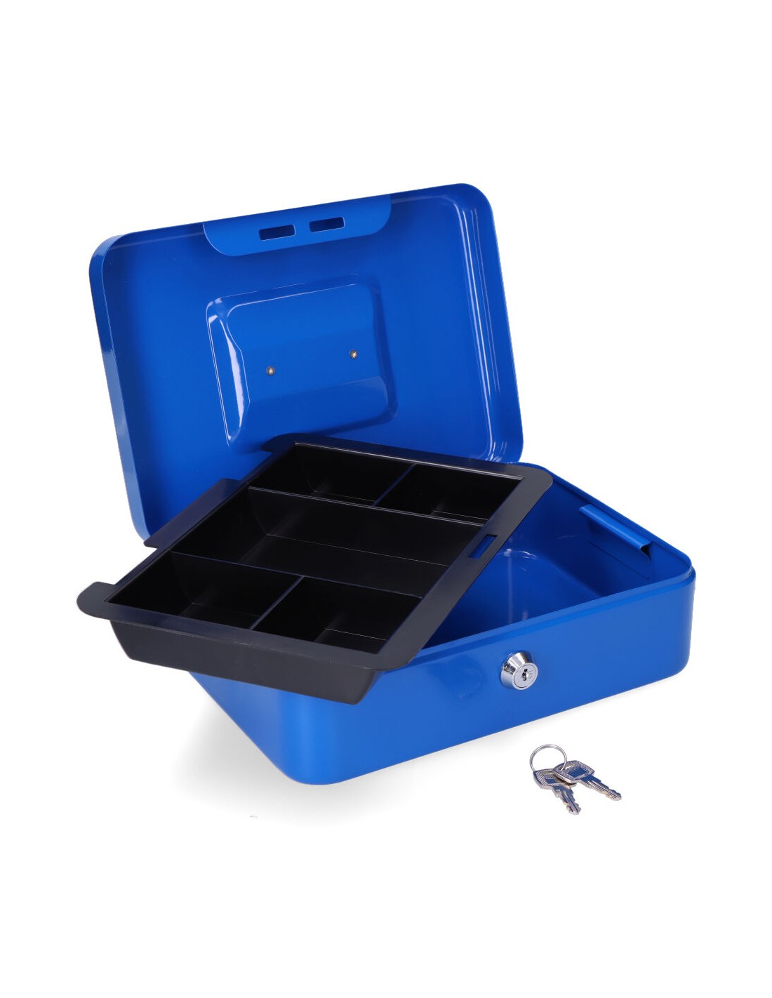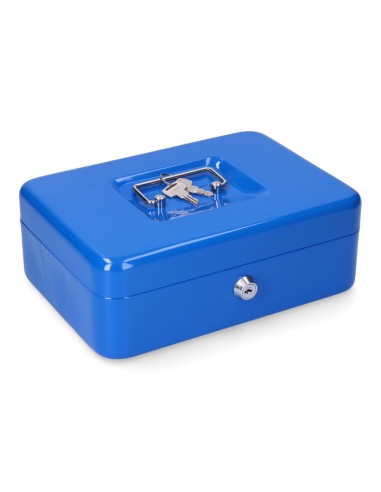 Caja de caudales cfc09.medida 250x180x90mm. incluye bandeja.dispone de asa para su facil transporte. material acero.acabado azul. (tornillos no incluidos)
