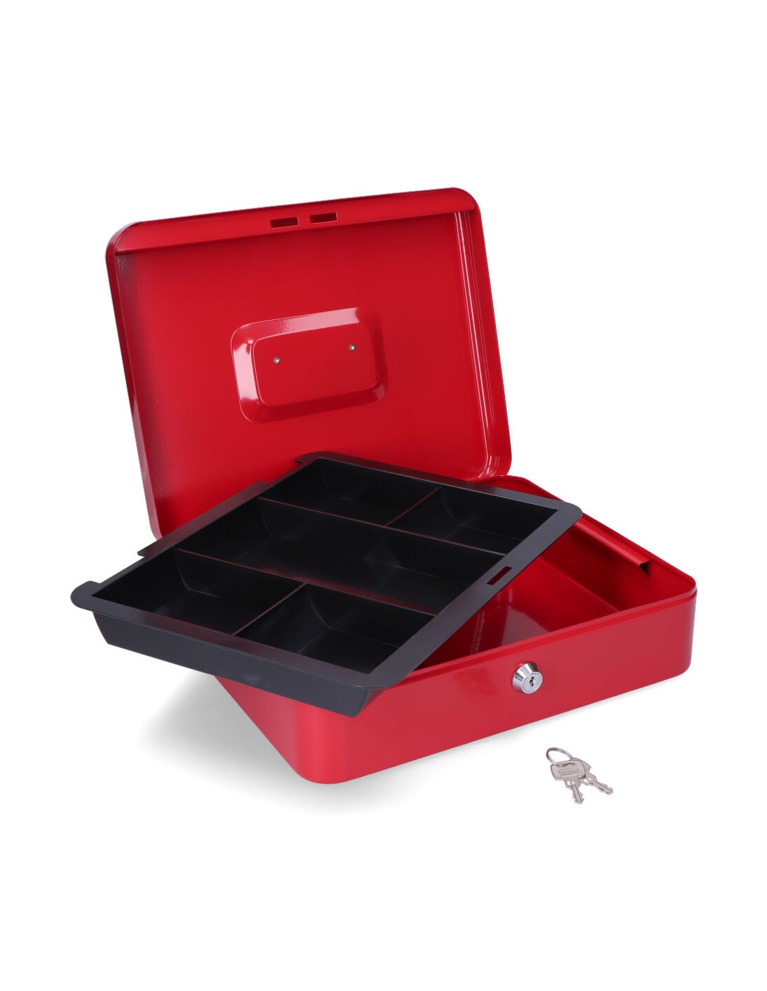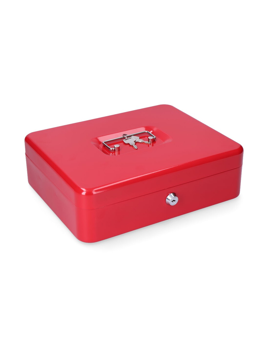Caja de caudales cfc09. medida 300x240x90mm. incluye bandeja.dispone de asa para su facil transporte. material acero. acabado rojo. (tornillos no incluidos)