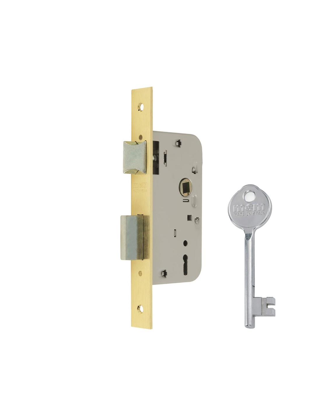 Cerradura de embutir 1 punto 1508-2-45 mcm cerradura de picaporte y palanca con llave de borja y medida entre ejes 58mm acabado latón. entrada 45.contiene 1 llave de borjas