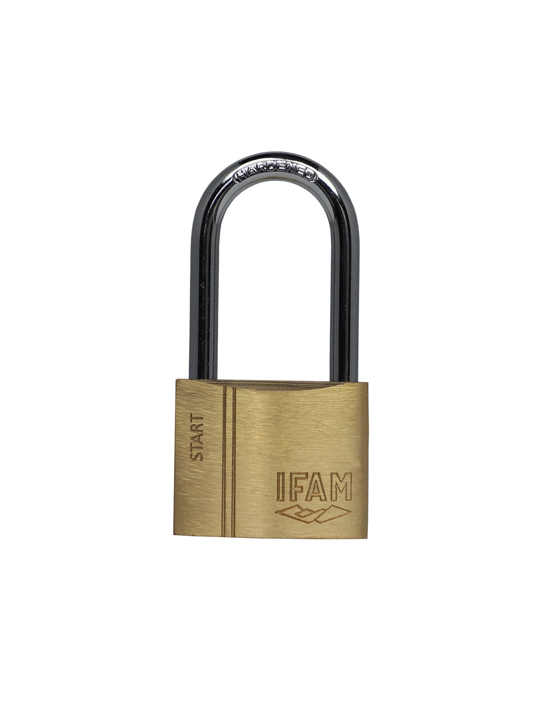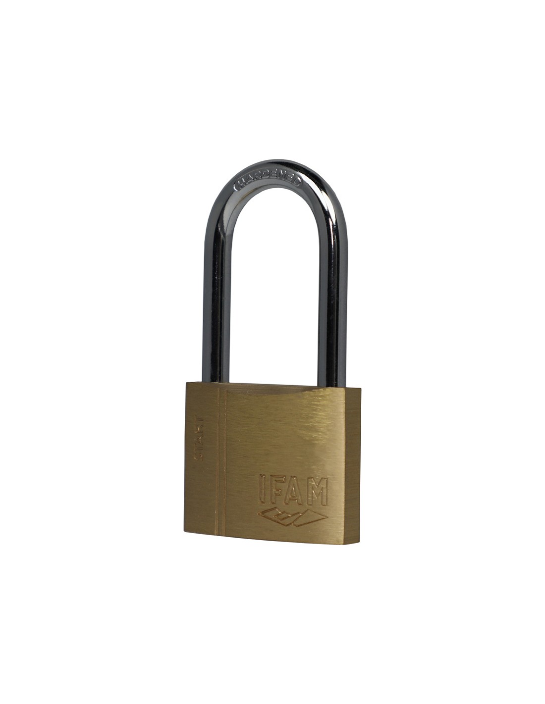 Candado de argo largo 40mm sr40al 074010sr ifam candado start arco largo de acero templado y cromado de gran resistencia. llave de serreta, llaves diferentes. cuerpo de latón extruido. sistema de doble enganche. se suministra con dos llaves de latón niqueladas. se suministra en caja con euro-colgador. peso (kg): 0,133. dimensiones (cm): 1,31x3,988x3,192cm