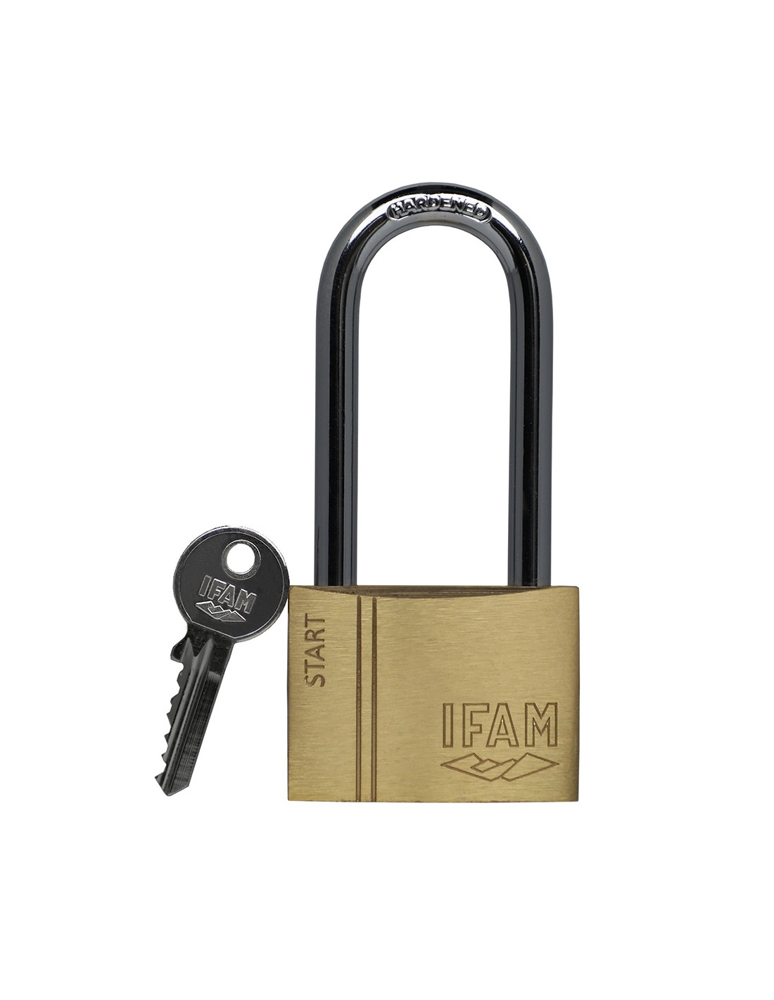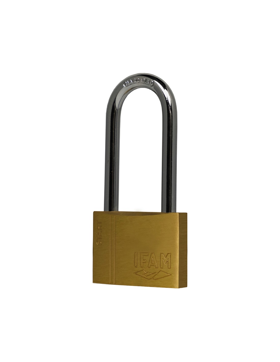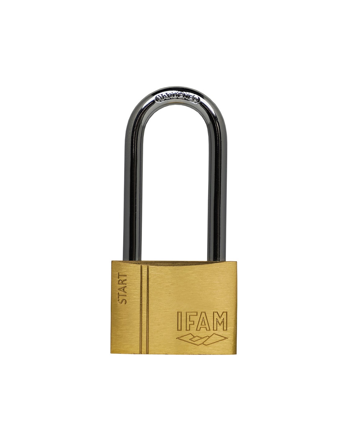 Candado de argo largo 50mm sr50al 075010sr ifam candado start arco largo de acero templado y cromado de gran resistencia. llave de serreta, llaves diferentes. cuerpo de latón extruido. sistema de doble enganche. se suministra con dos llaves de latón niqueladas. se suministra en caja con euro-colgador. peso (kg): 0,204. dimensiones (cm): 1,379x4,78x3,5cm