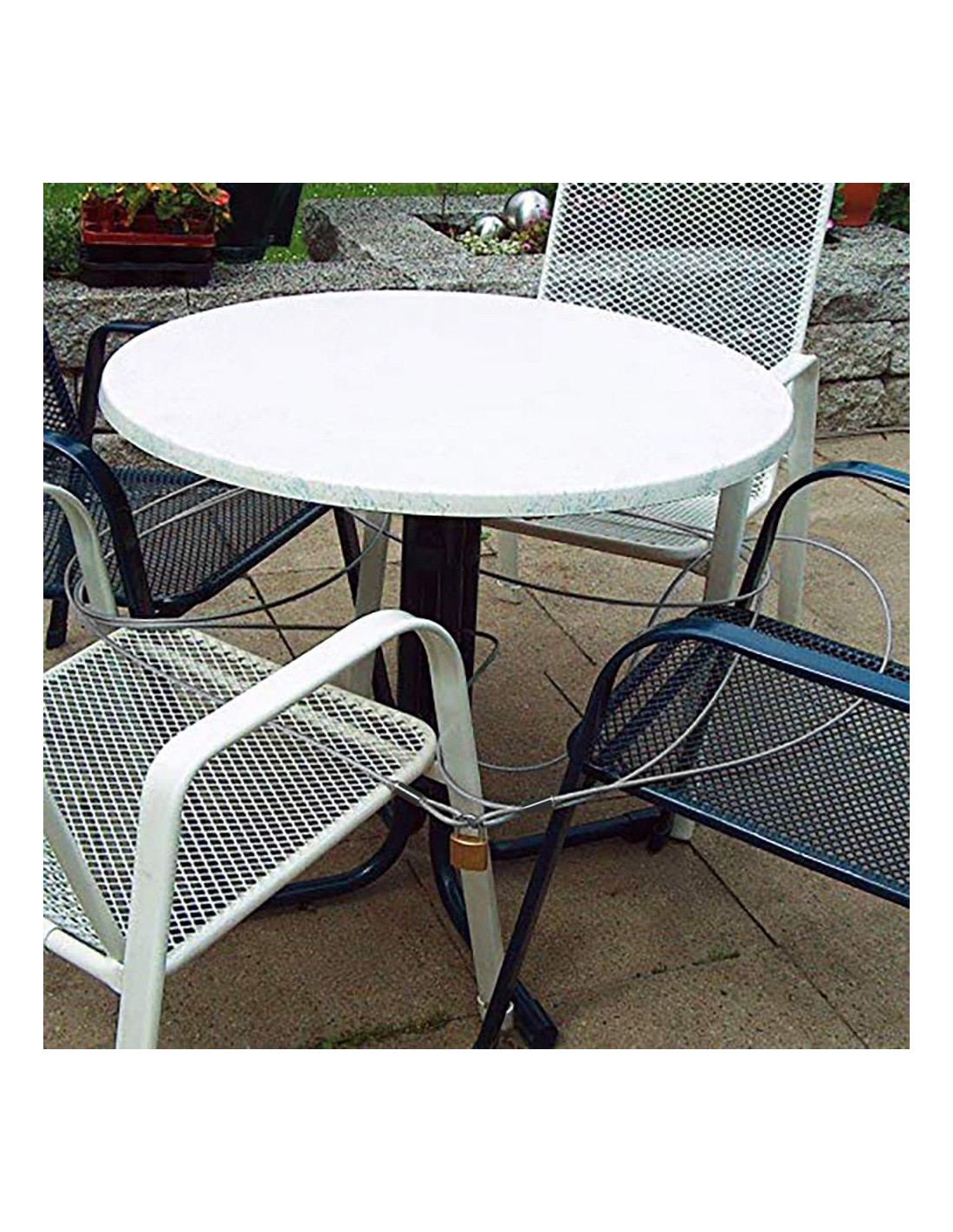 Cable fabricado en acero galvanizado con cobertura de vinilo negro de 200 cm de longitud y un diámetro de 10 mm se precisa un candado que una los dos lazos colocados en los extremos del cable no incluido. adecuado para protección antirobo de muebles de terraza en zonas públicas