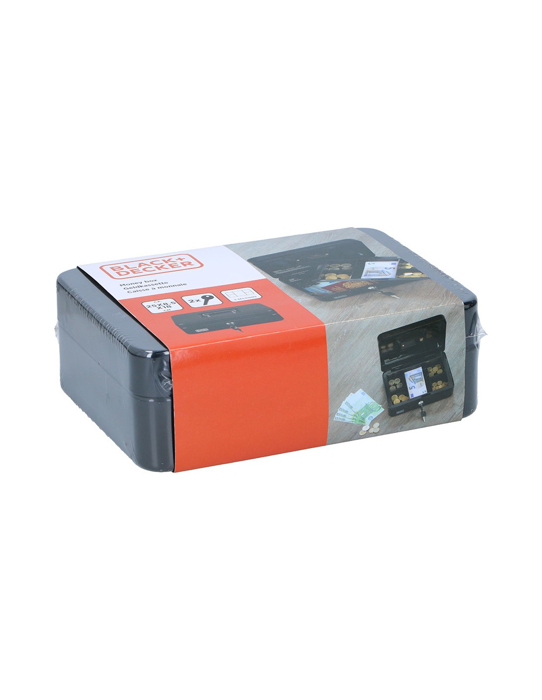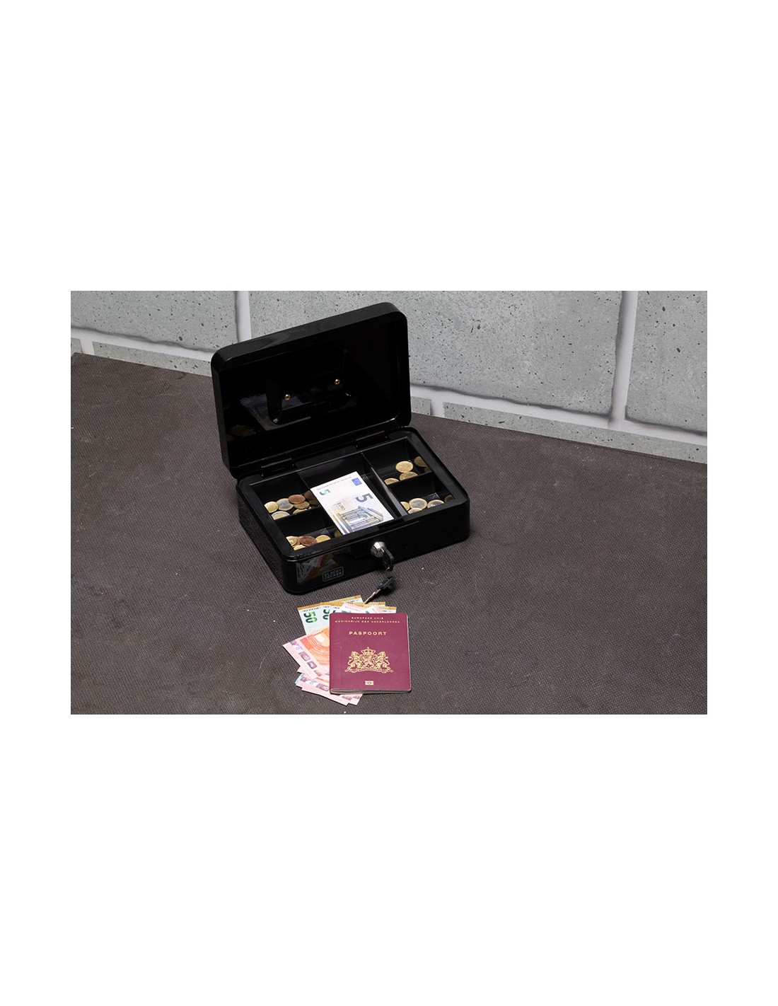 Caja de caudales 5 divisiones con 2 llaves, color negro, 25 x 8,5 x 18 cm