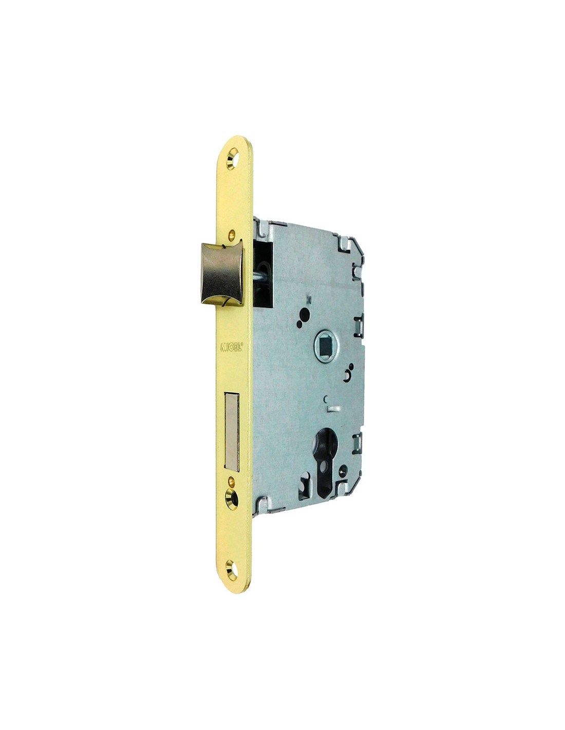 Cerradura embutir cre03 para cilindro de perfil europeo con leva larga (l15) para instalar en puertas de madera, con canto redondo, resbalón reversible y nueca para cuadradillo de 8 mm esta cerradura tiene una distancia entre ejes de 47 mm y viene preparada con una entrada de 60 mm no incluye cilindro incluye protector de escudo, cerradero y tornillería con caja cerrada y mecanismo interior de acero desplazamiento de 20 mm (2 vueltas) fabricada en acero, acabado en latonado