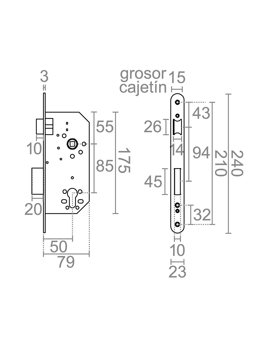 Cerradura embutir cre06 para cilindro de perfil europeo con leva larga (l15) para instalar en puertas de carpintería de madera, con canto redondo, picaporte reversible y nueca para cuadradillo de 8 mm esta cerradura tiene una distancia entre ejes de 85 mm y viene preparada con una entrada de 50 mm no incluye cilindro con caja cerrada y mecanismo interior de acero desplazamiento de 20 mm (2 vueltas) incluye protector de escudo, cerradero y tornillería fabricada en acero, acabado en latonado