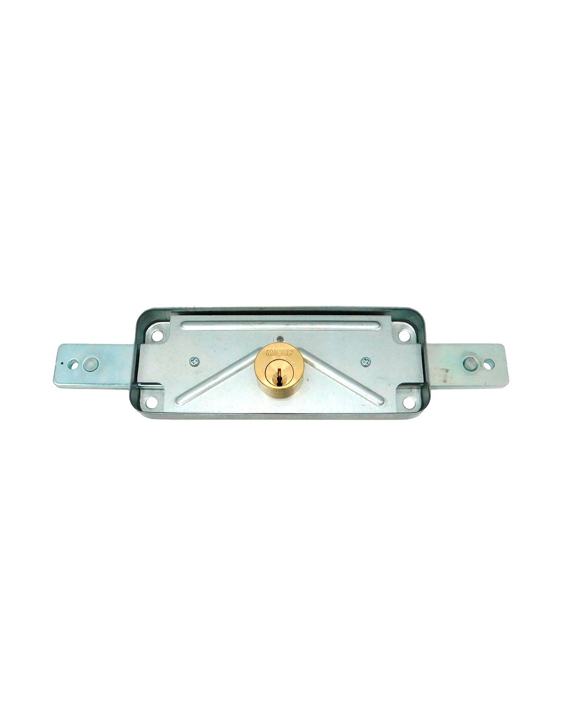 Cerradura metálica de cierre de persiana crp01 para reforzar la seguridad de las persianas metálicas enrollables de locales comerciales, almacenes o garajes, salvaguardando su contenido interior, con palancas laterales de acero con accionamiento interior y exterior para la apertura y cierre de la persiana mediante llave con un recorrido de 24 mm (1 vuelta de llave). incluye 3 llaves de tipo serreta para cilindro redondo con 3 pines que viene incluido la llave en bruto para realizar copias adicionales es la referencia 10815 fabricada en acero, acabado en zincado