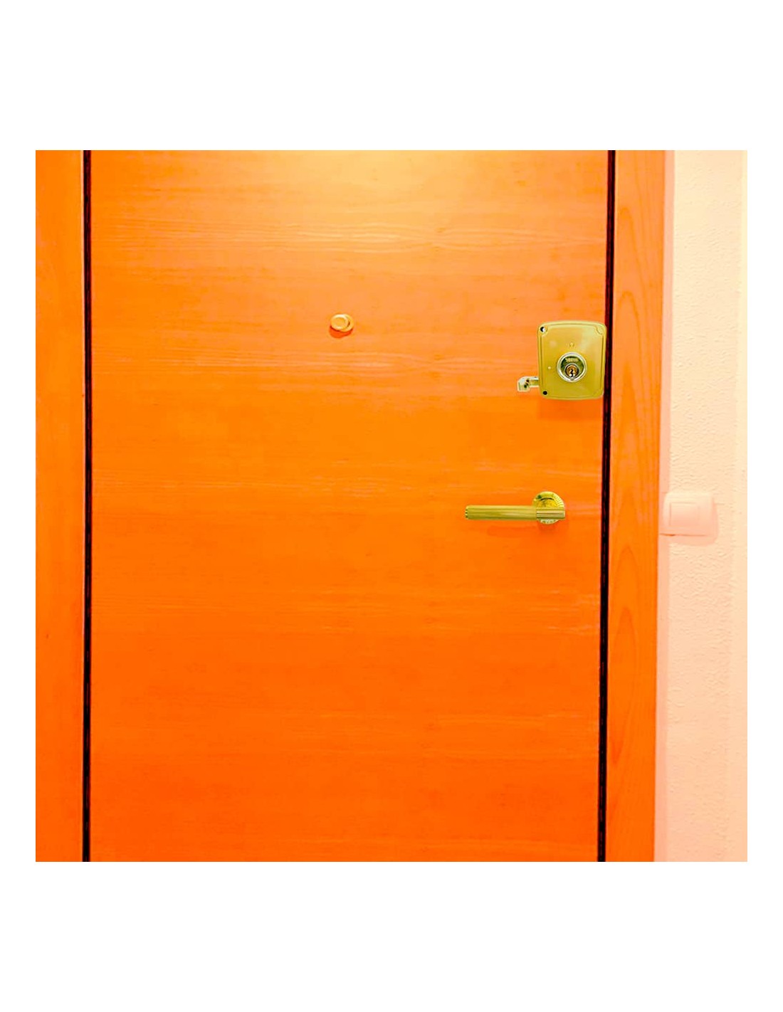 Cerradura sobreponer crs02 40 x 80 mm para instalar en puertas de carpintería de madera, reforzando la seguridad en la entrada del hogar u otras estancias como despachos, locales comerciales, etc. el cilindro que lleva es de forma redonda de 5 pines es de mano izquierda desplazamiento de 20 mm (2 vueltas) incluye palanca de cierre, lengüeta, tirador y 5 llaves tipo serreta la llave en bruto para copias adicionales es la referencia 10791 fabricada en acero, acabado pintado en oro