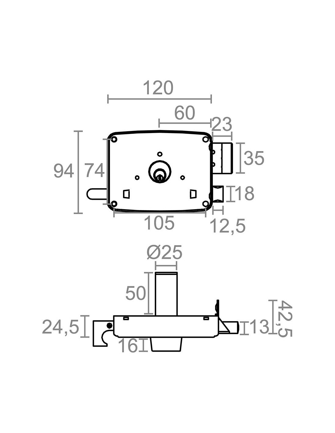 Cerradura sobreponer crs02 60 x 120 mm para instalar en puertas de carpintería de madera, reforzando la seguridad en la entrada del hogar u otras estancias como despachos, locales comerciales, etc. el cilindro que lleva es de forma redonda de 5 pines es de mano izquierda desplazamiento de 20 mm (2 vueltas) incluye palanca de cierre, lengüeta, tirador y 5 llaves tipo serreta la llave en bruto para copias adicionales es la referencia 10791 fabricada en acero, acabado pintado en oro