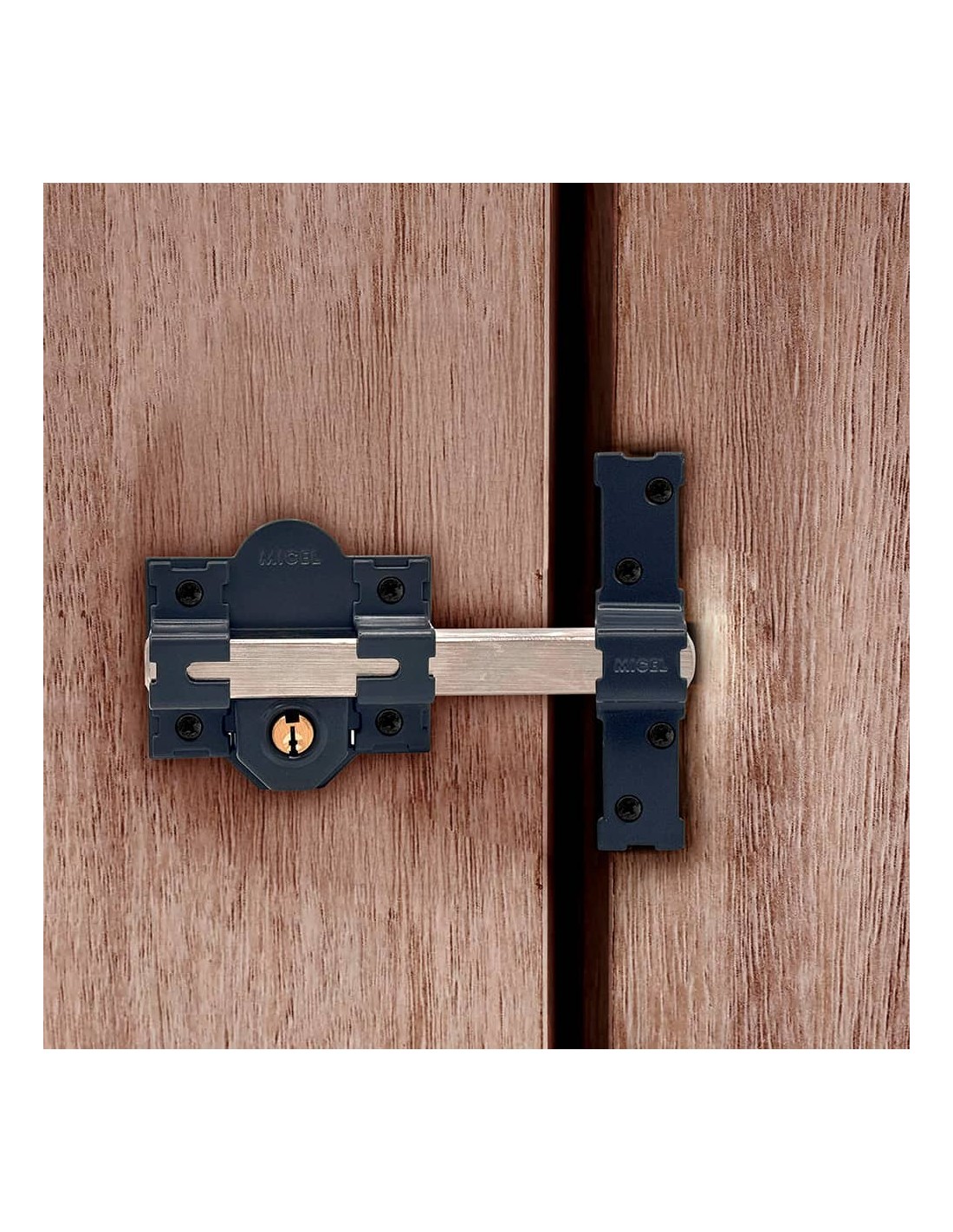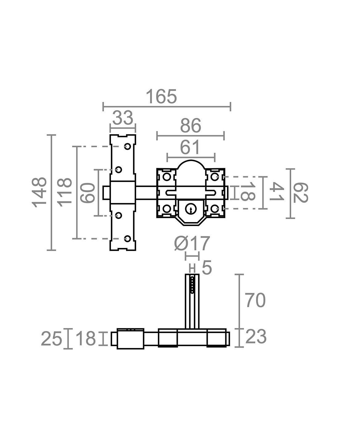 Cerrojo de sobreponer crr09 con placa de 86 mm y cilindro de boca pera de 70 mm para reforzar la seguridad mediante la instalación en cualquier tipo de puerta además, al ser reversible, no guarda mano el accionamiento se realiza de manera interna y externa mediante llave a través del cilindro con 3 llaves de serreta fabricado en acero, acabado pintado en gris