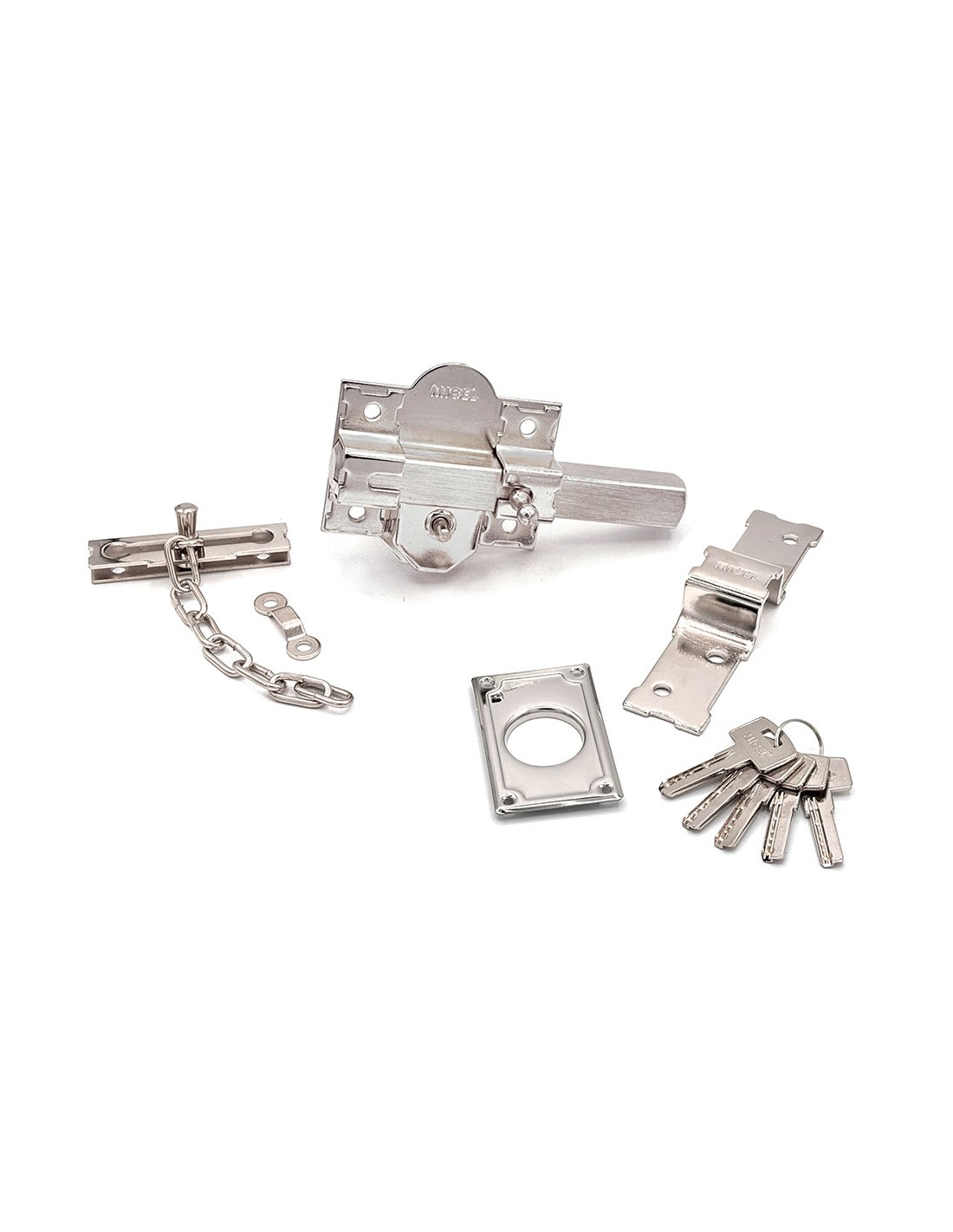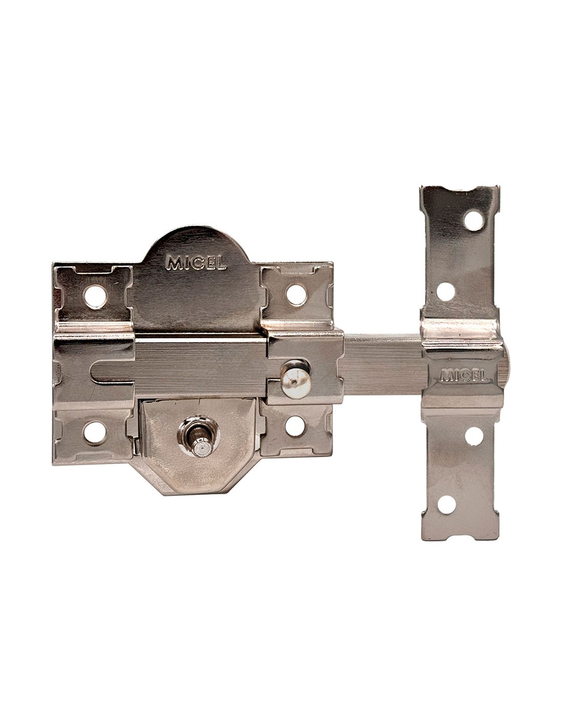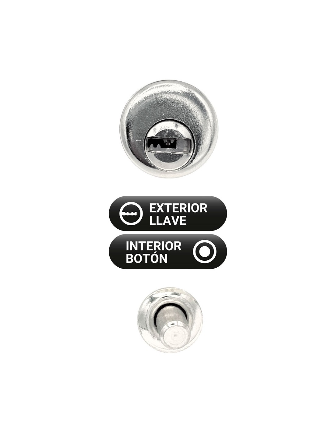 Cerrojo de sobreponer crr10 con placa de 86 mm y cilindro redondo de 50 mm para reforzar la seguridad mediante la instalación en cualquier tipo de puerta además, al ser reversible, no guarda mano el accionamiento interno se realiza mediante un botón, mientras que el exterior se realiza mediante llave de seguridad a través del cilindro con 5 llaves de seguridad además incluye cadenilla, protector de cilindro y sistema antibumping fabricado en acero, acabado níquel