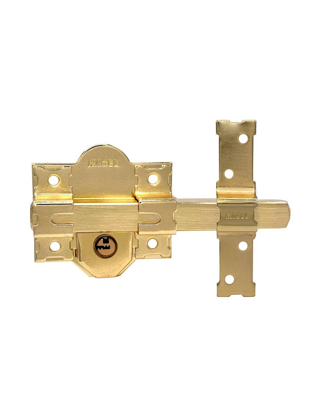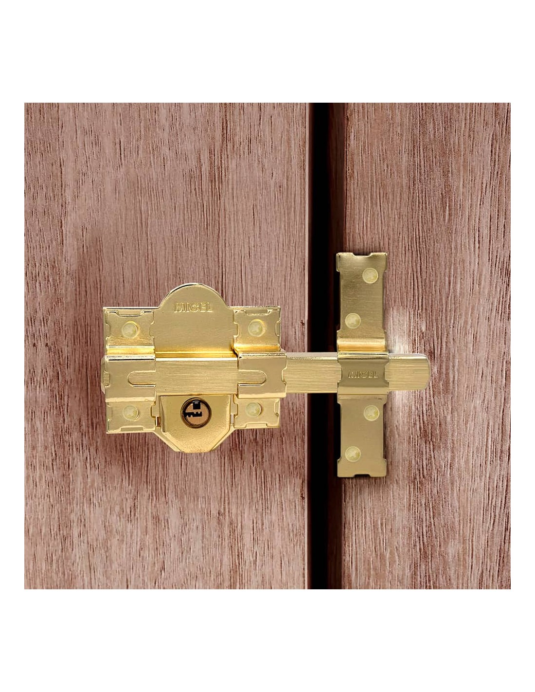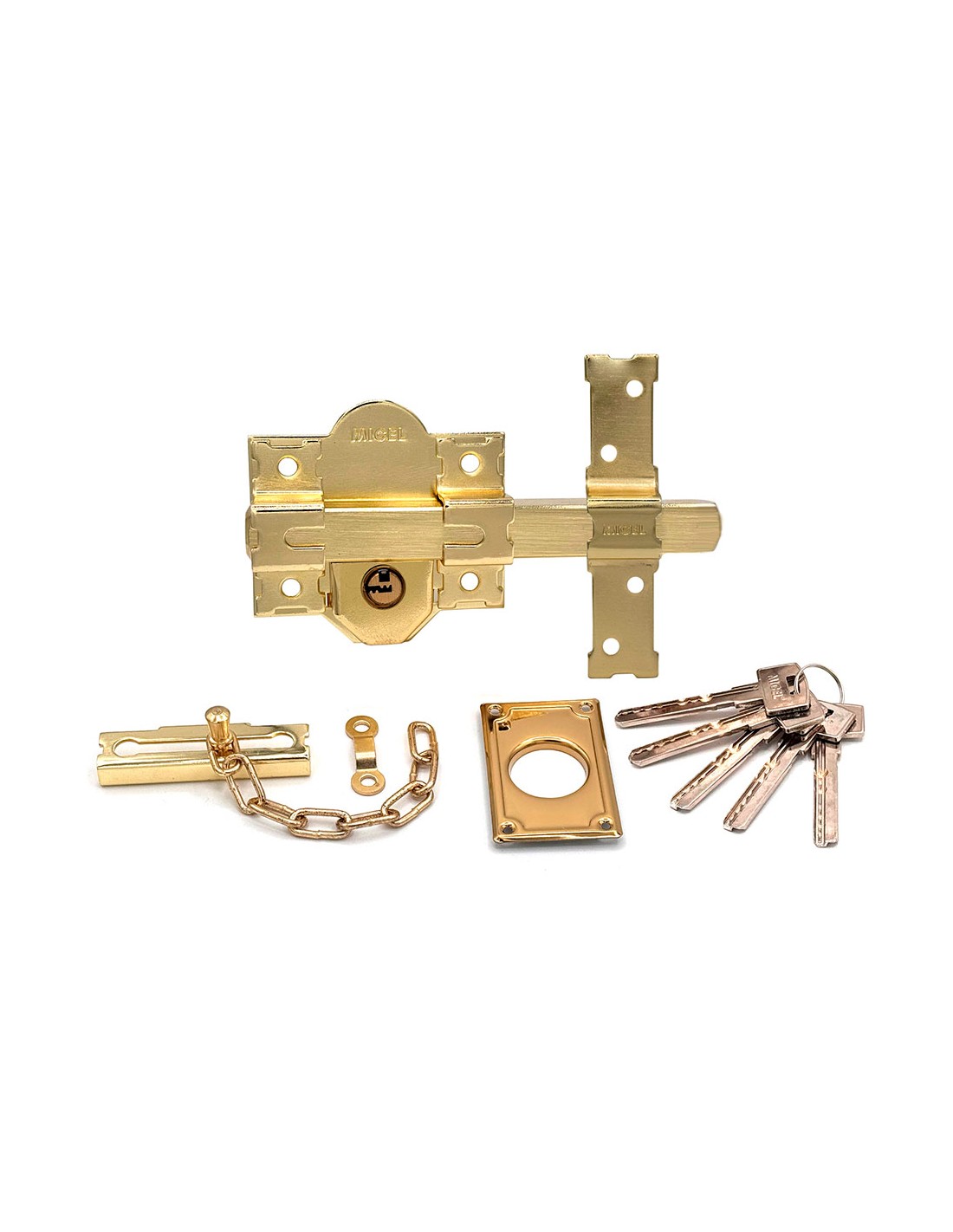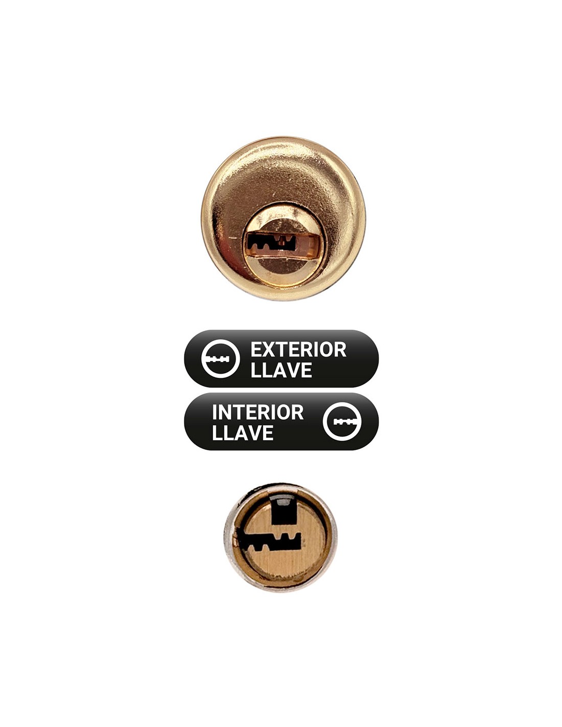 Cerrojo de sobreponer crr11 con placa de 86 mm y cilindro redondo de 50 mm para reforzar la seguridad mediante la instalación en cualquier tipo de puerta además, al ser reversible no guarda mano el accionamiento interno y externo se realiza mediante llave de seguridad a través del cilindro con 5 llaves de seguridad además, incluye cadenilla, protector de cilindro y sistema antibumping fabricado en acero, acabado en latón satinado