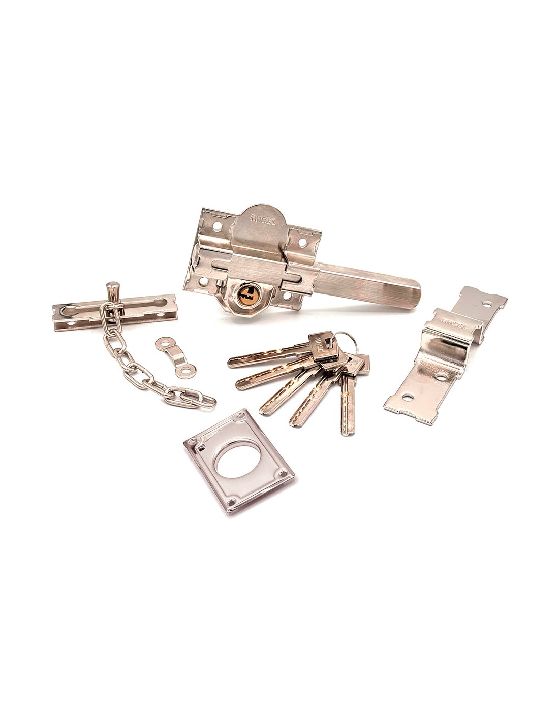 Cerrojo de sobreponer crr11 con placa de 86 mm y cilindro redondo de 50 mm para reforzar la seguridad mediante la instalación en cualquier tipo de puerta además, al ser reversible no guarda mano el accionamiento interno y externo se realiza mediante llave de seguridad a través del cilindro con 5 llaves de seguridad además, incluye cadenilla, protector de cilindro y sistema antibumping fabricado en acero, acabado níquel