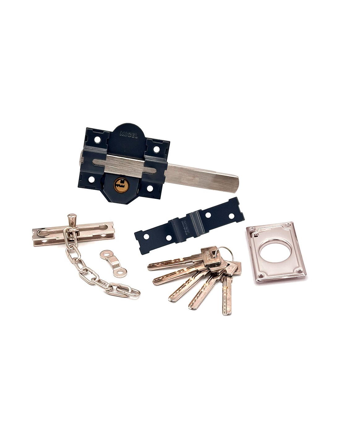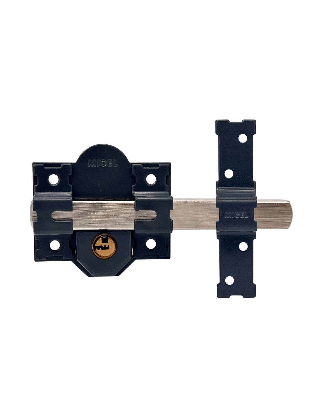 Cerrojo de sobreponer crr11 con placa de 86 mm y cilindro redondo de 50 mm para reforzar la seguridad mediante la instalación en cualquier tipo de puerta además, al ser reversible no guarda mano el accionamiento interno y externo se realiza mediante llave de seguridad a través del cilindro con 5 llaves de seguridad además, incluye cadenilla, protector de cilindro y sistema antibumping fabricado en acero, acabado pintado en gris
