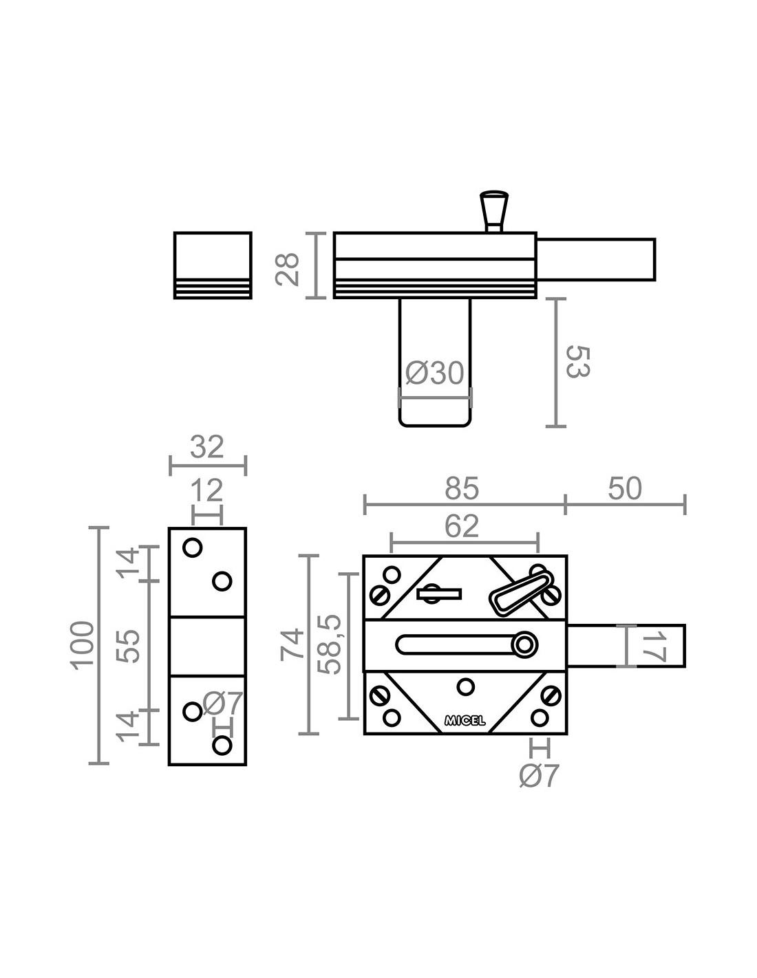 Cilindro de latón 70mm (40+30mm) leva corta r13 con 3 llaves de serreta incluidas
