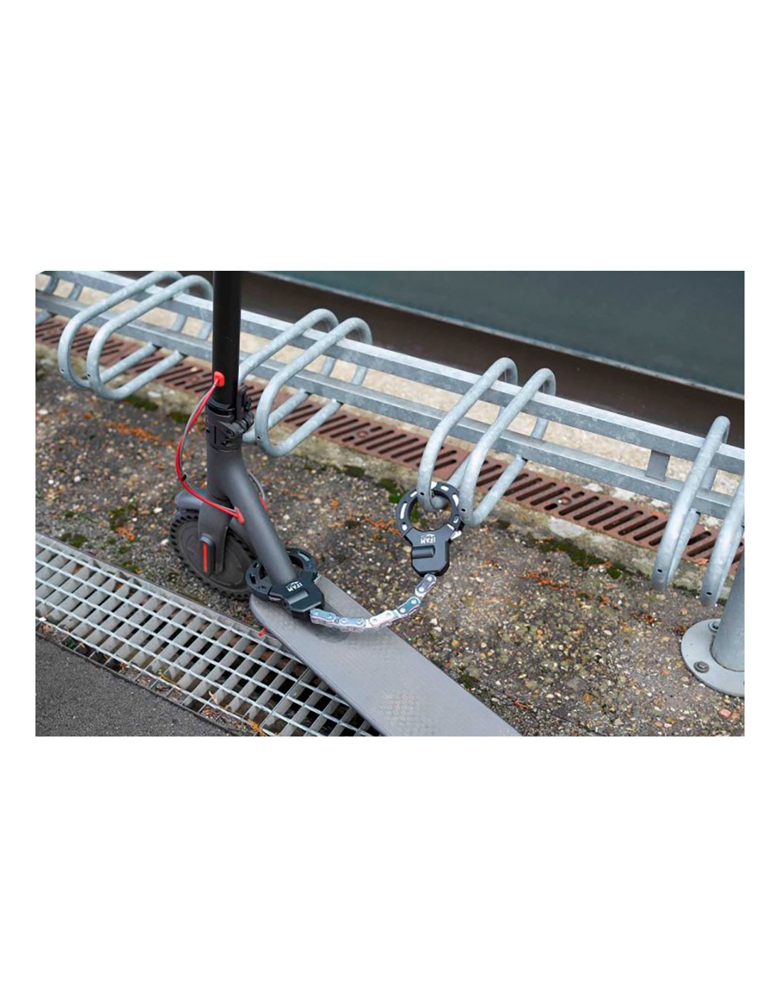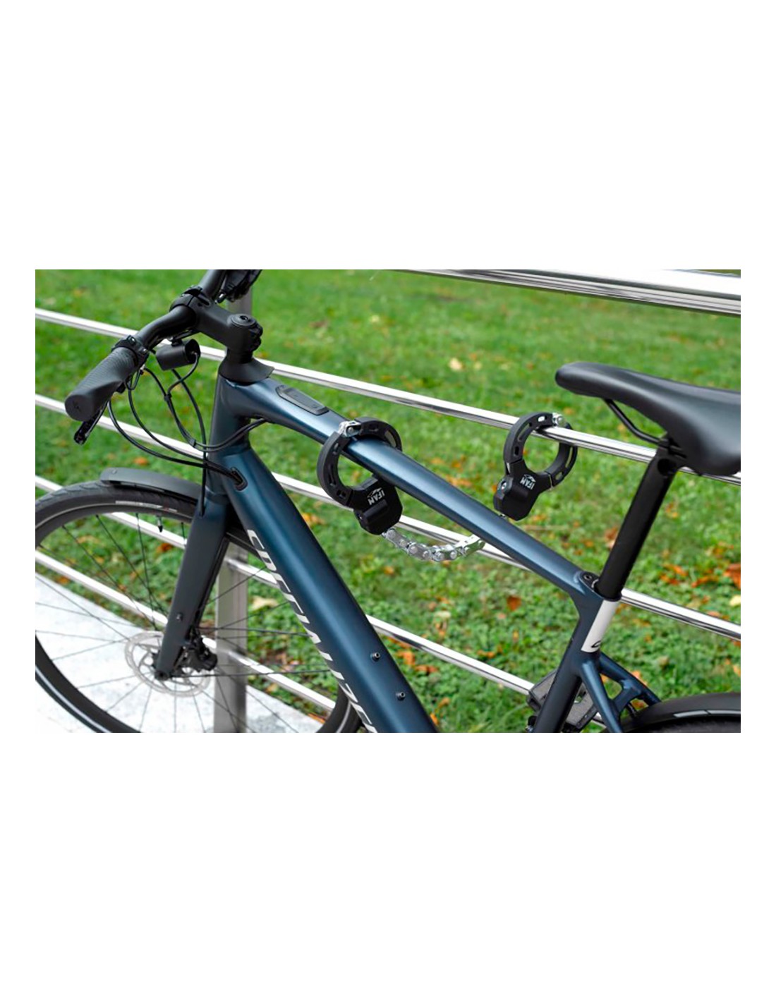 Esposas de acero endurecido, para patinetes y bicicletas, forradas de silicona para proteger de ralladuras y picaduras. apertura y cierre rápido y seguro de las esposas. cadena y pasadores de acero endurecido a3 con alta resistencia a los cortes. el cilindro está protegido con plástico abs. hay 3 niveles de diámetro de esposa: 7,5 cm, 8 cm y 8,5 cm. incluye 3 llaves y bolsa ergonómica