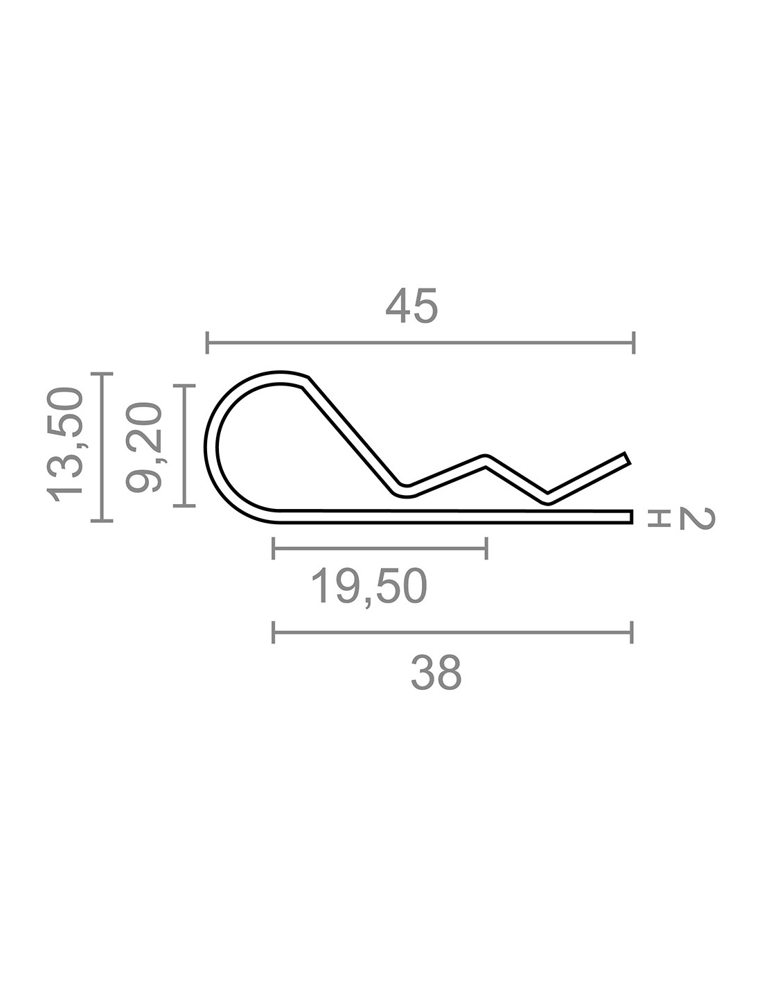 Pasador ps14 forma r, 2 mm, material acero, acabado galvanizado, blister 2 uds